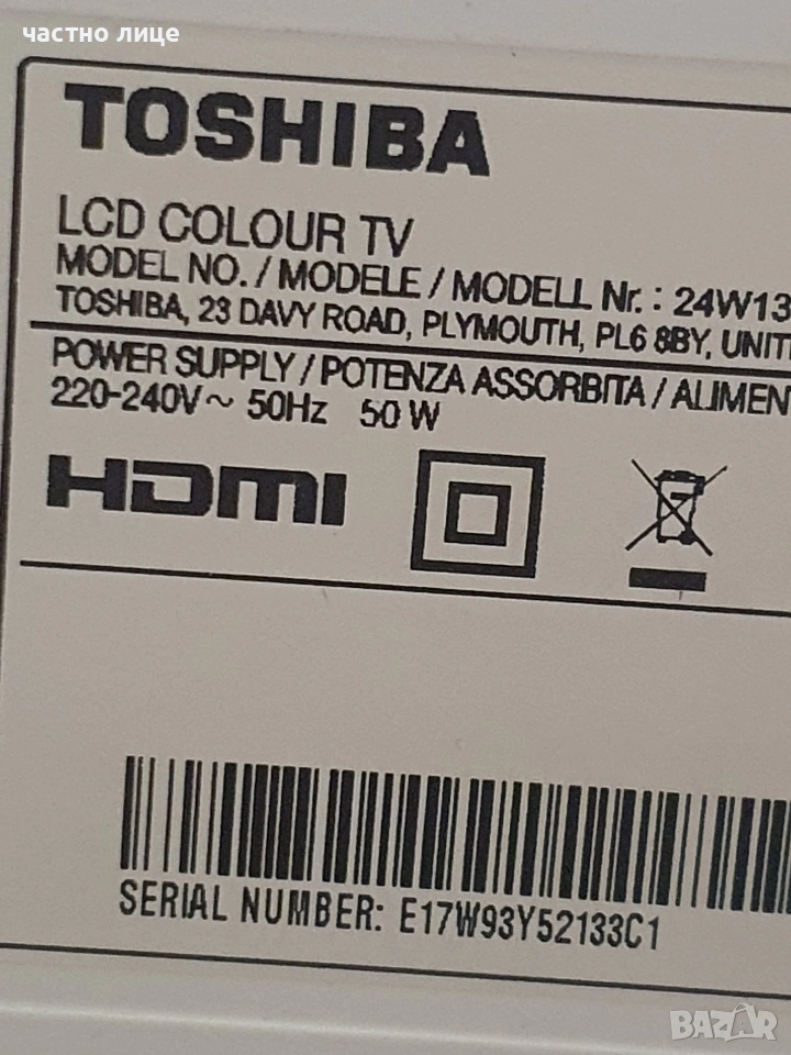 Tелевизор Toshiba 24", снимка 1 - Части и Платки - 53446467 Tелевизор Toshiba 24", снимка 2 - Части и Платки - 53446467 Tелевизор Toshiba 24", снимка 3 - Части и Платки - 53446467 Tелевизор Toshiba 24", снимка 4 - Части и Платки - 53446467 Tелевизор Toshiba 24", снимка 5 - Части и Платки - 53446467 Tелевизор Toshiba 24", снимка 6 - Части и Платки - 53446467 1/6