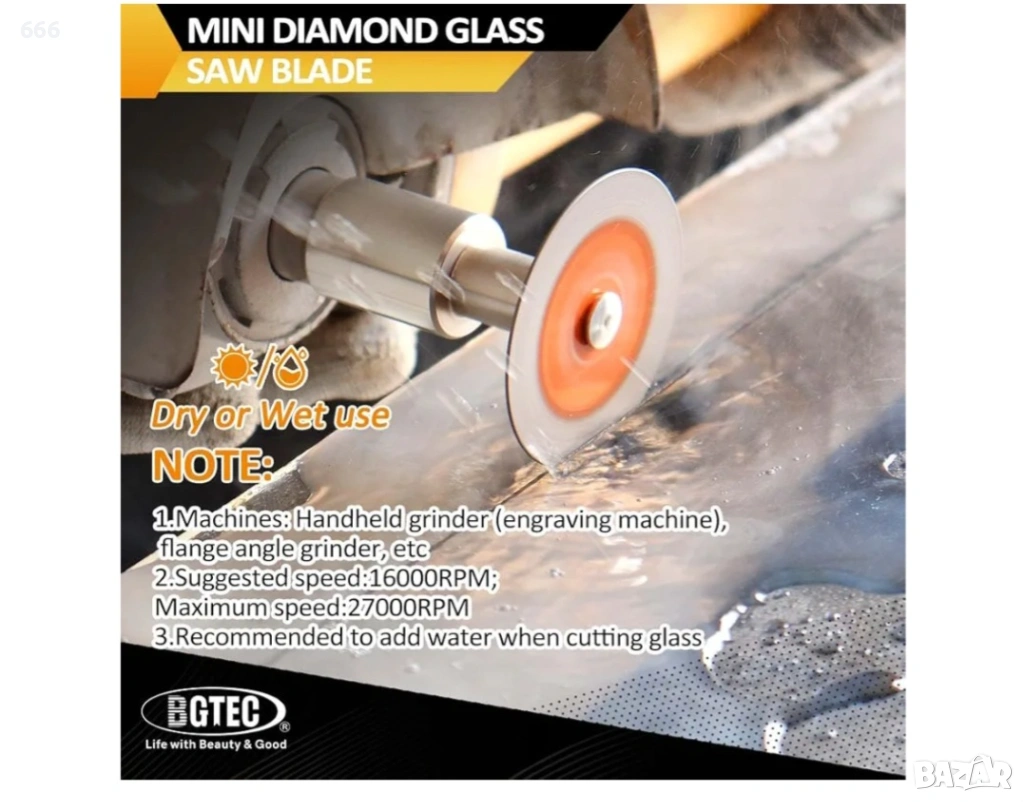 BGTEC Диамантен мини нож за рязане на стъкло - 5 бр. 1 9/16" (40 мм) → Обява 53446565