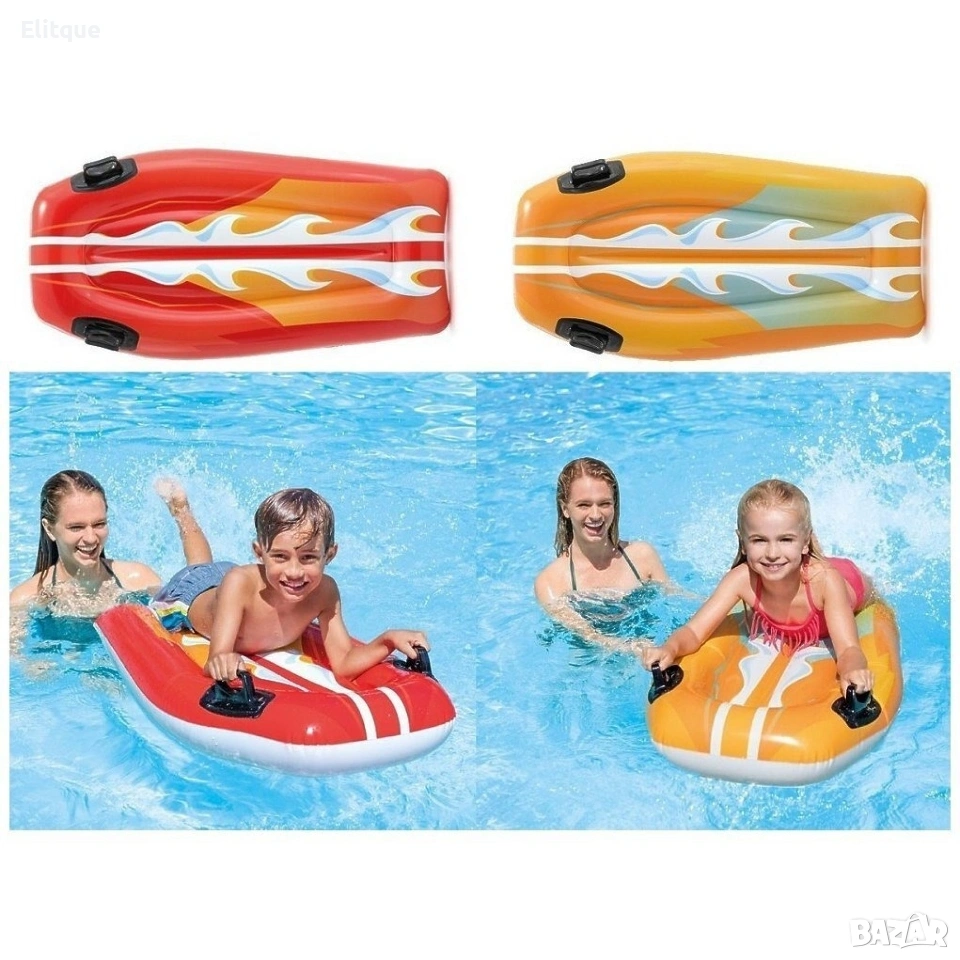 INTEX JOY RIDER ИНТЕКС НАДУВАЕМ СЪРФ Характеристики: 2 надуваеми въздушни камери 2 дръжки за захващане Размер: 112см х 62см Включена е лепенка за поправка Предлагат се в 2 цвята. За деца над 6 години.