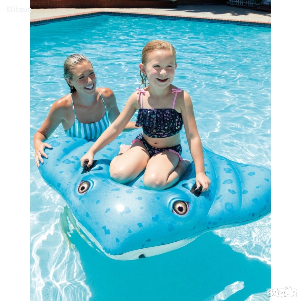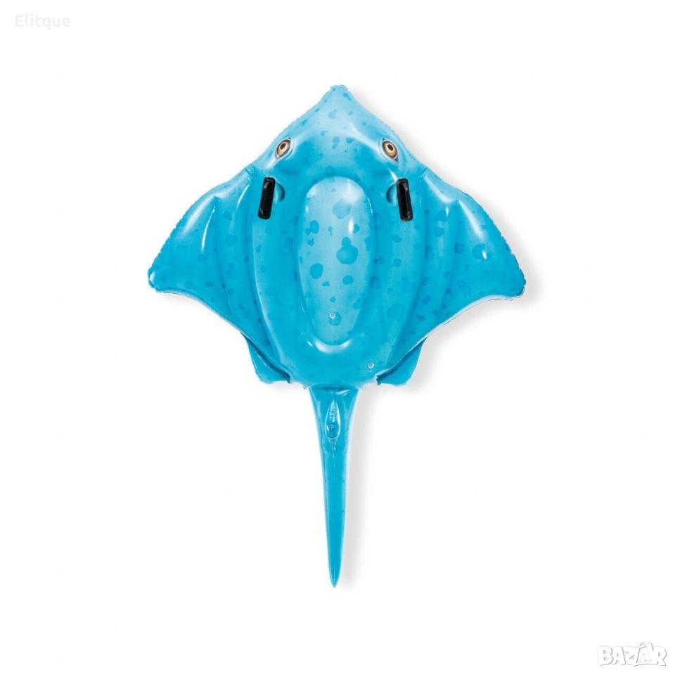 INTEX STINGRAY RIDE-ON ИНТЕКС НАДАУВАЕМ СКАТ Характеристики: 2 дръжки за захващане Размер: 188см х 145 см Включена е лепенка за поправка Товароносимост: 40кг За деца над 3 години. Размер на опаковката: 23см x 25см x 7см
