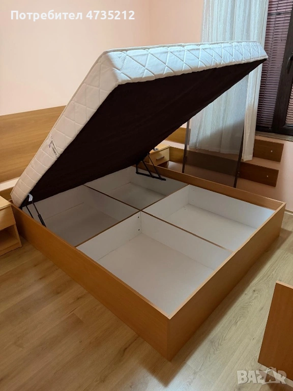 Продават се нова спалня с вграден механизъм за повдигане на матрака.