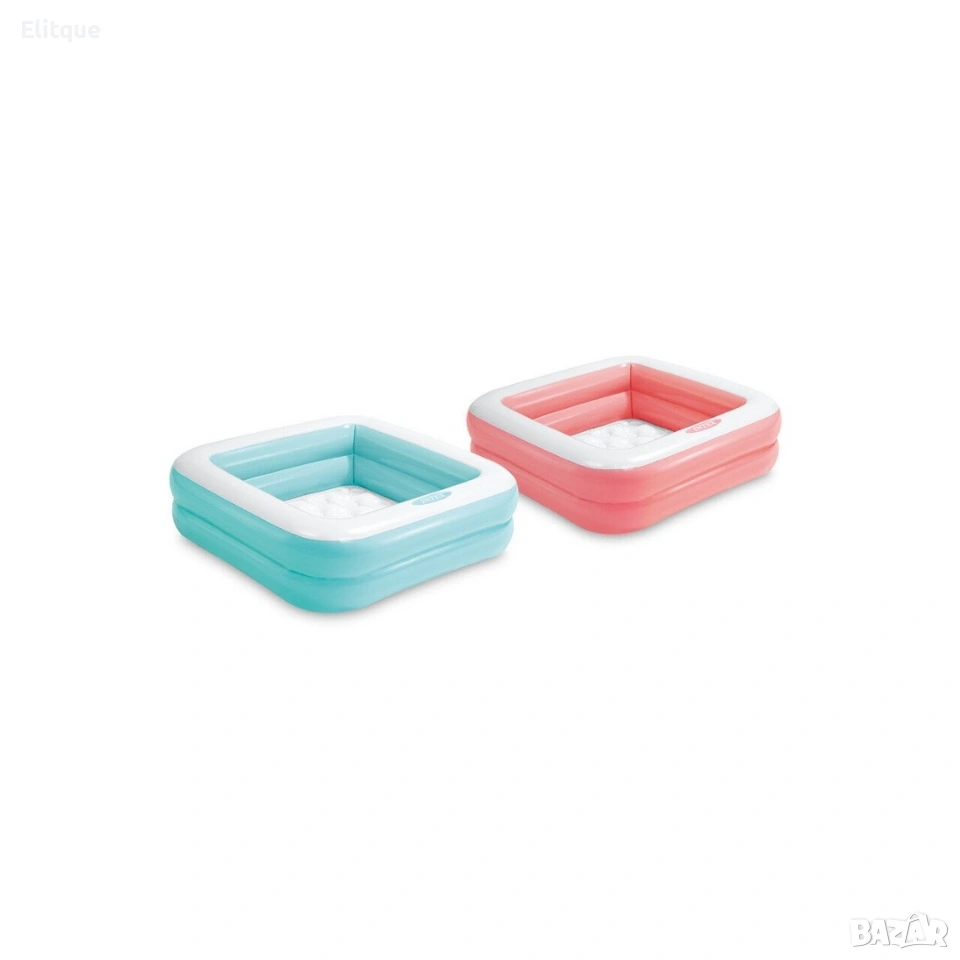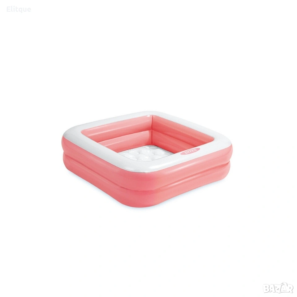INTEX PLAY BOX POOLS ИНТЕКС НАДУВАЕМ КВАДРАТЕН БАСЕЙН Характеристики: 2 надуваеми камери Надуваемо меки дъно за допълнителен комфорт Размер: 85 х 85 х 23 см. Вместимост: 57 литра и дълбочина 17 см. Включена е лепенка за поправка За деца от 1 до 3 години.