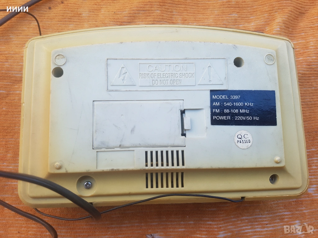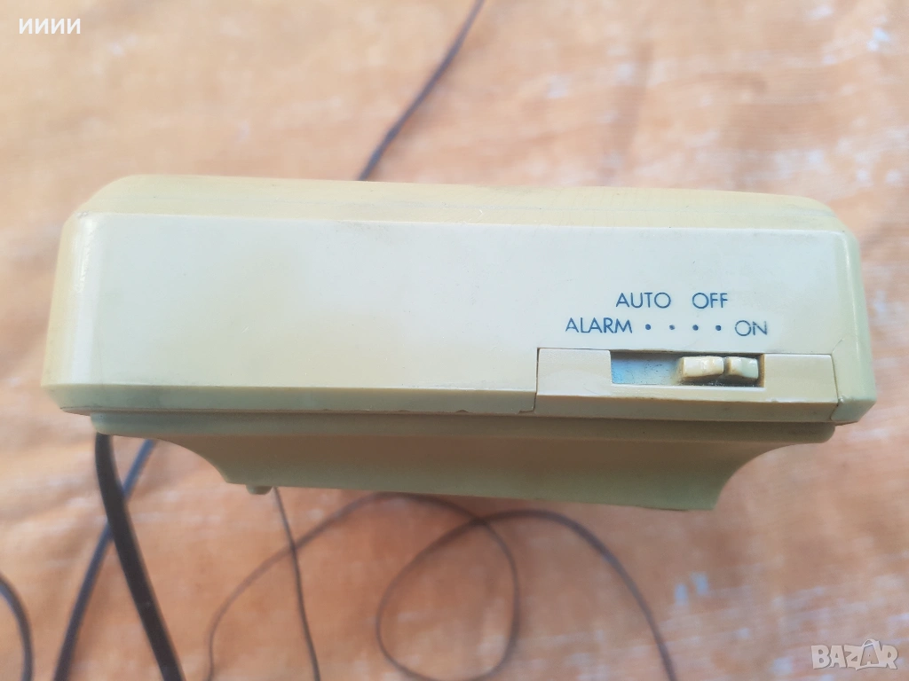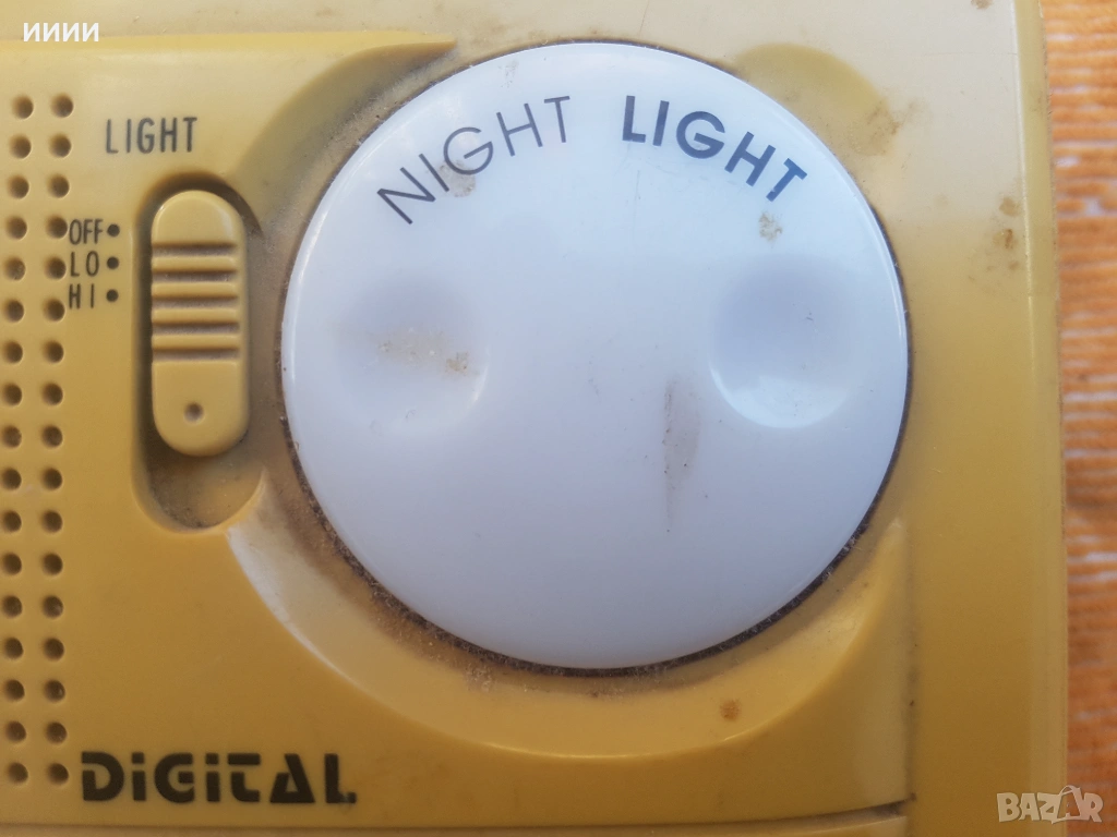 Може да събужда с радио или с аларма. Лампата,може да се ползва и като нощна. Радиото, работи на ток или на една батерия от 9 волта. Здраво и годно за ползване.