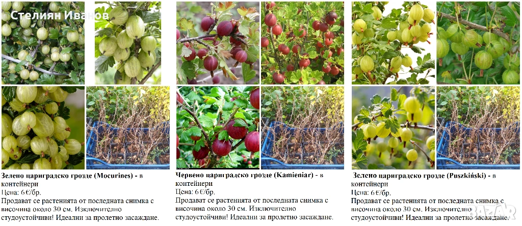 20. Зелено цариградско грозде (Ribes uva-crispa 'Mocurines') – 6 €/бр.; около 25-30 см