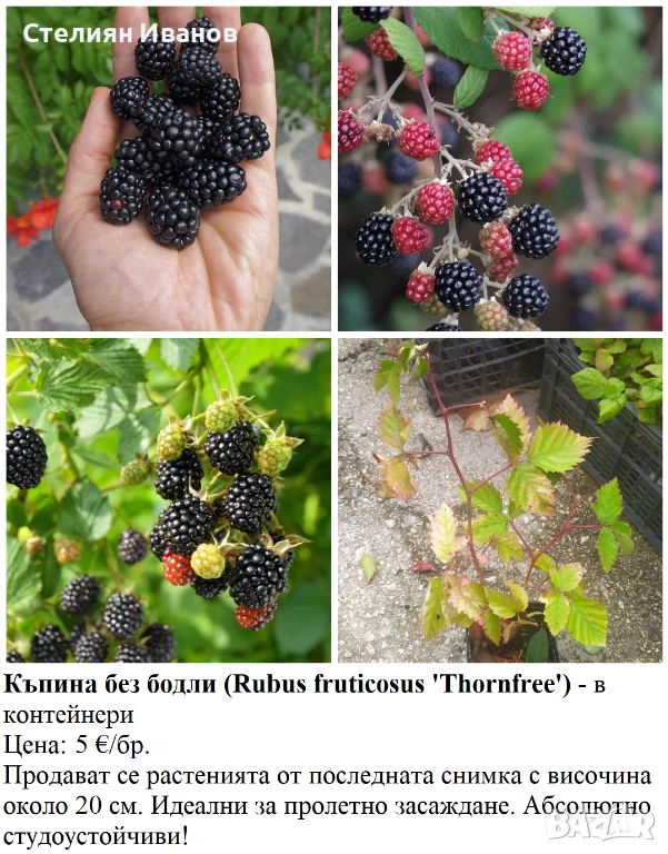 12. Къпина без бодли (Rubus fruticosus 'Thornfree') – 5 €/бр.; около 25-30 см