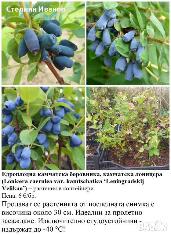 9. Едроплодна камчатска боровинка, камчатска лоницера (Lonicera caerulea var. kamtschatica ‘Leningradskij Velikan’) – 6 €/бр.; около 25-30 см