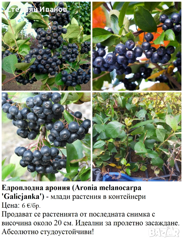 6. Едроплодна арония (Aronia melanocarpa 'Galicjanka') – 6 €/бр.; около 25-30 см