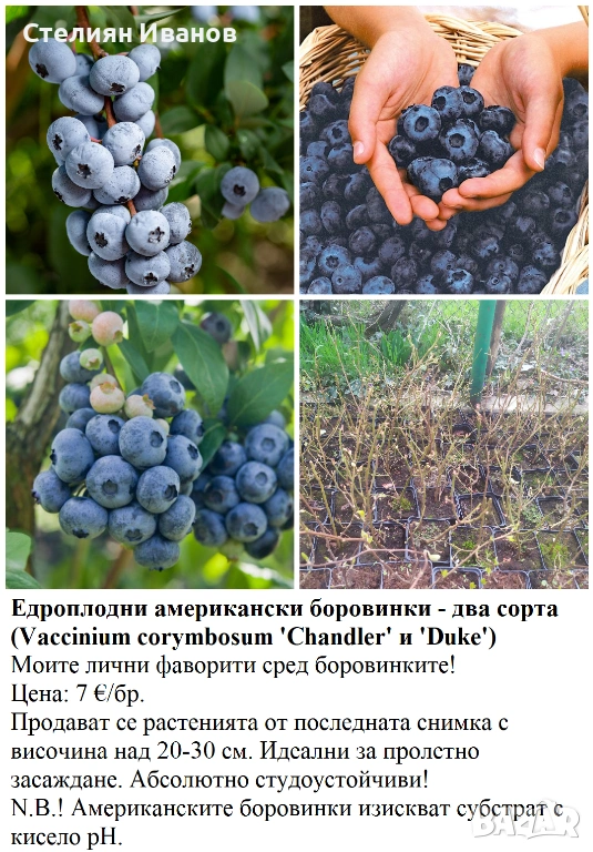 8. Едроплодни американски боровинки (Vaccinium corymbosum 'Chandler' и ‘Duke’) – 7 €/бр.; около 20-30 см