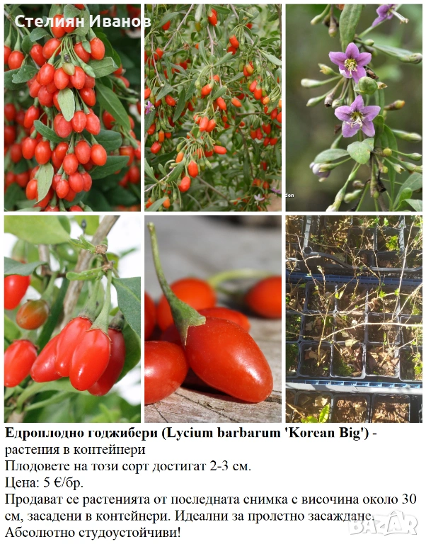 4. Едроплодно годжибери (Lycium barbarum 'Korean Big') – 5 €/бр.; около 25-30 см