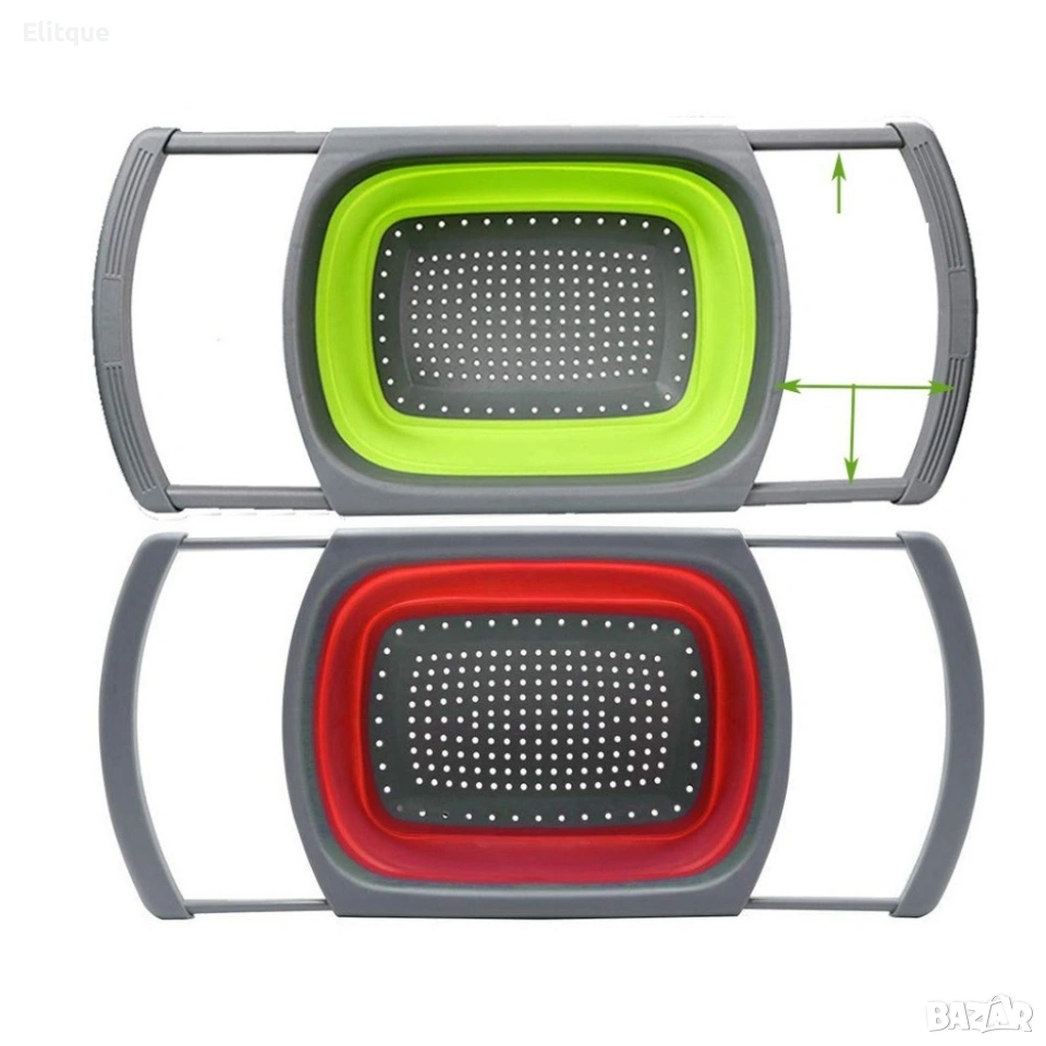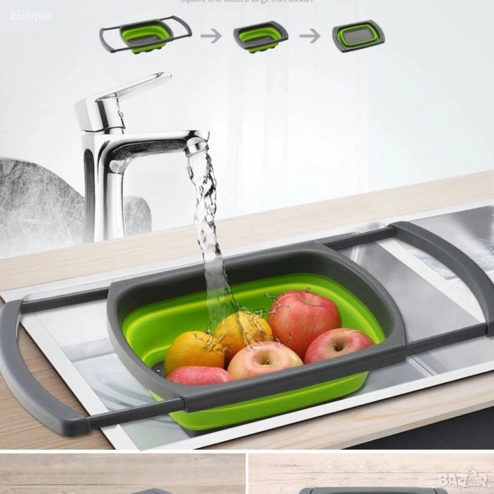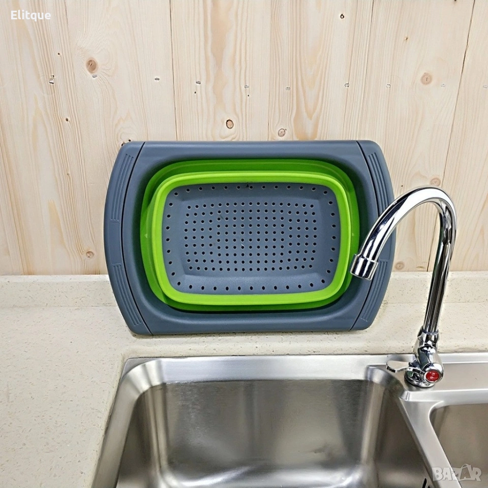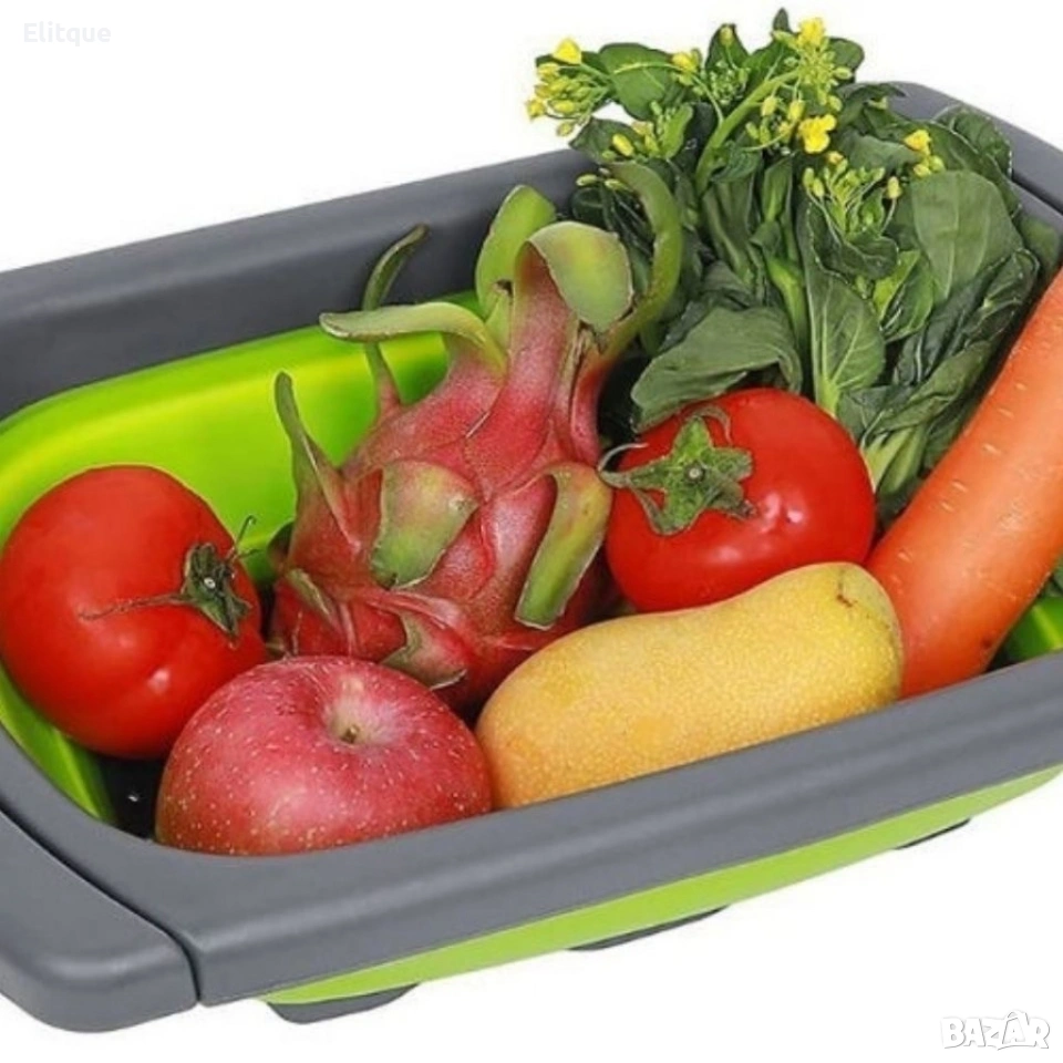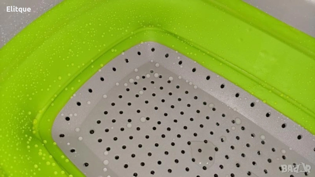 Сгъваема правоъгълна кошница за измиване и изцеждане на плодове и зеленчуци