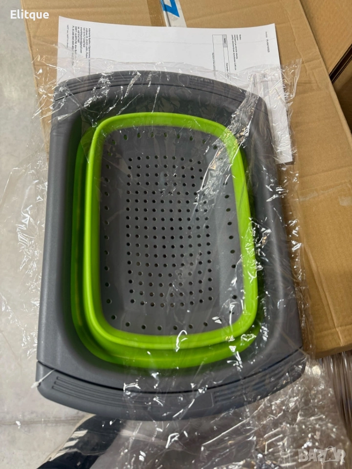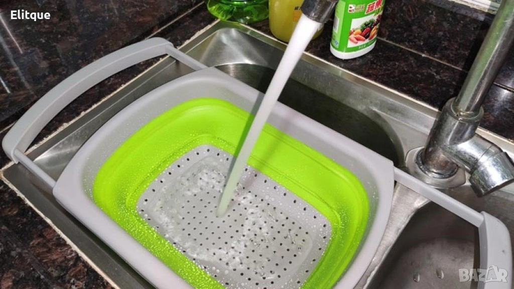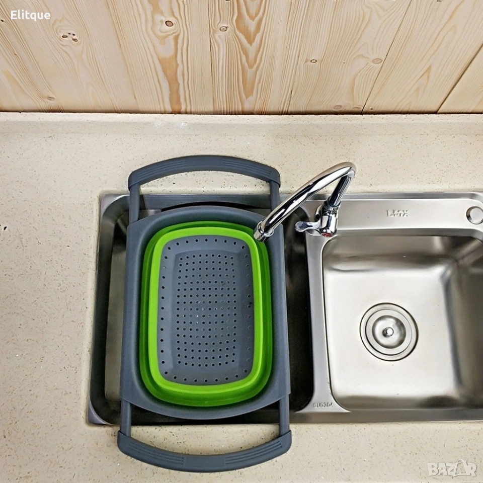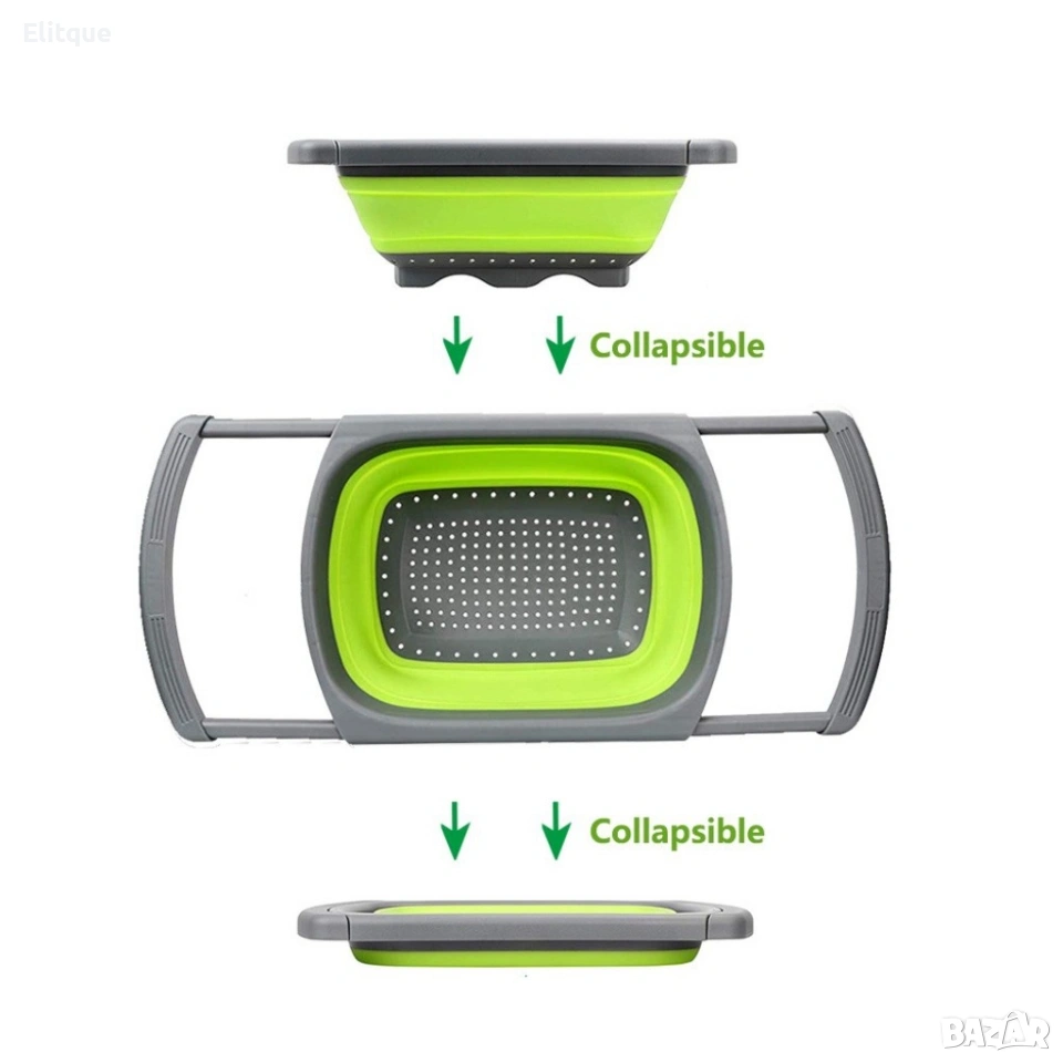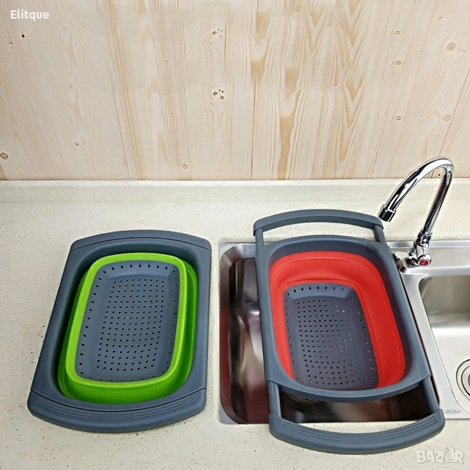 Сгъваема правоъгълна кошница за измиване и изцеждане на плодове и зеленчуци