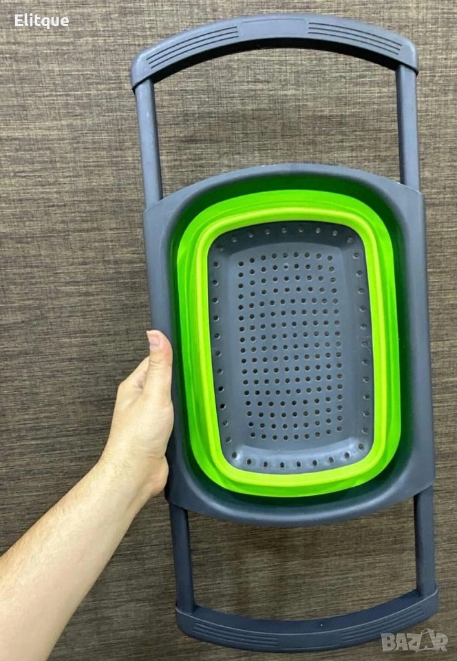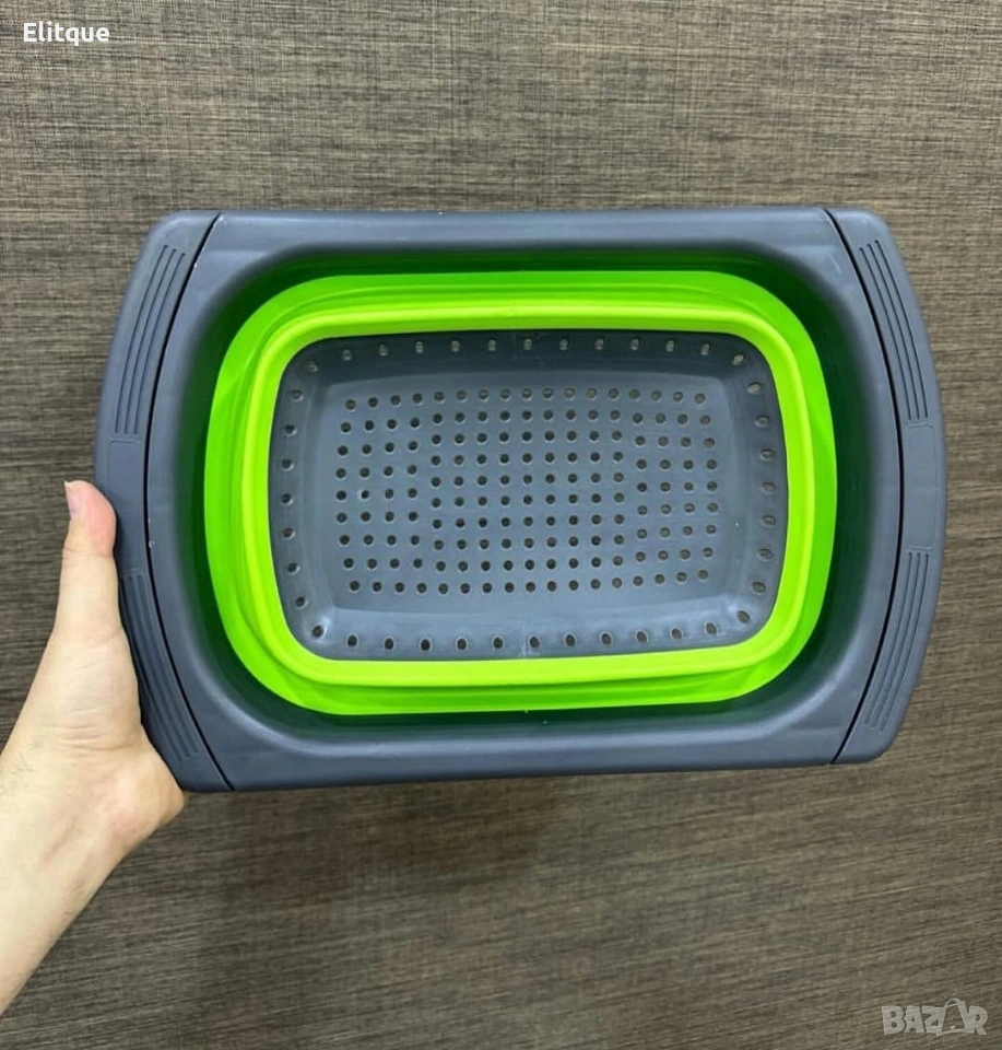 Сгъваема правоъгълна кошница за измиване и изцеждане на плодове и зеленчуци