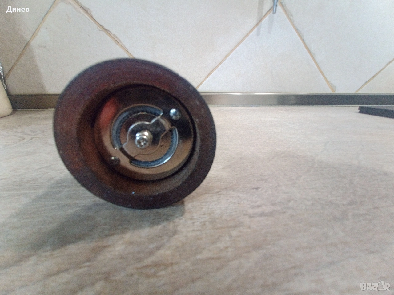 Продавам стилна и здрава ръчна мелничка, идеална за черен пипер, морска сол или сухи подправки. Съчетава класически дървен дизайн с висока функционалност. Характеристики: Материал: Висококачествено дърво с метален механизъм. Механизъм: Здрави метални зъбци, които не се износват като пластмасовите. Регулиране: Възможност за настройка на едрината на смилане (от фино до едро). Размери: Височина 26 см / Диаметър 5 см (много удобна за хващане и стабилна). Удобство: Дълга дръжка (манивела) за лесно смилане без усилие. Тази мелничка е перфектното допълнение към всяка кухня или маса, осигурявайки аромат на прясно смлени подправки за вашите ястия.
