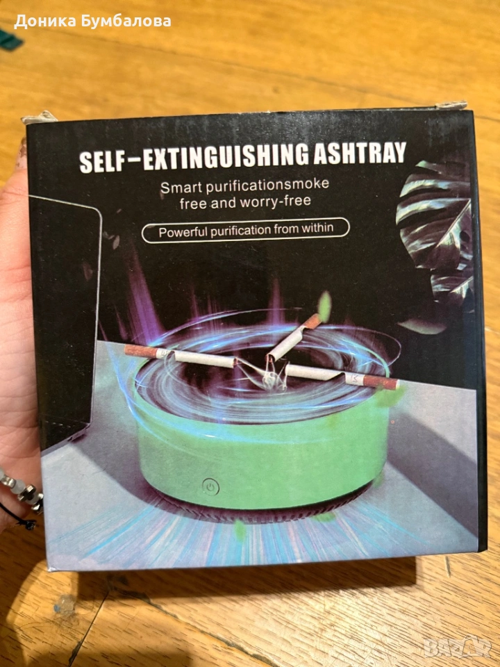Пепелника е чисто нов слагат се батериите и започва да дърпа дима на цигарата