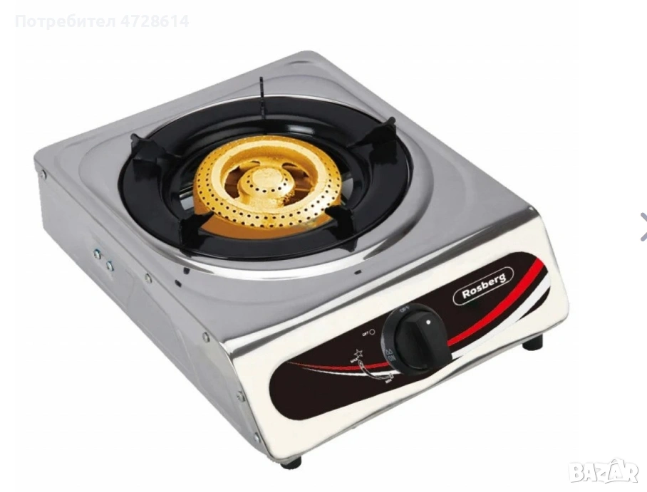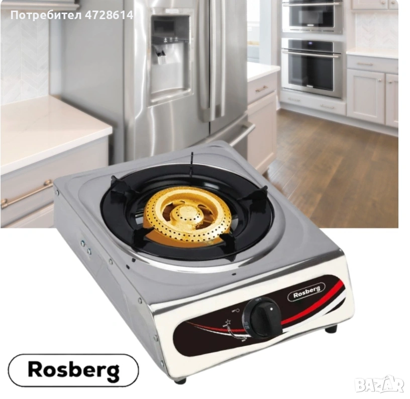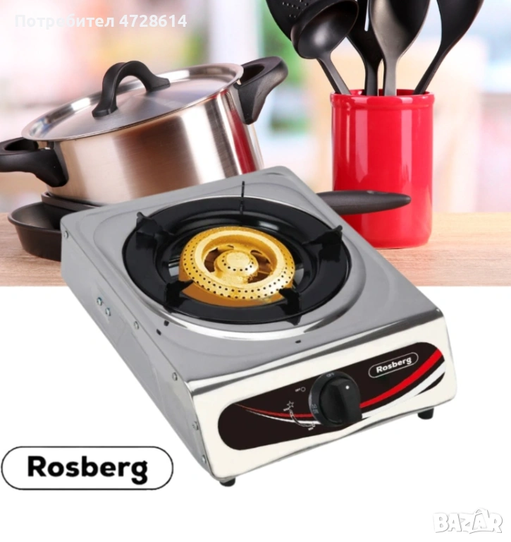 Котлон газов единичен Rosberg, 30 mbar, Неръжд, стомана, Чугунена горелка, 2 ГОДИНИ ГАРАНЦИЯ
