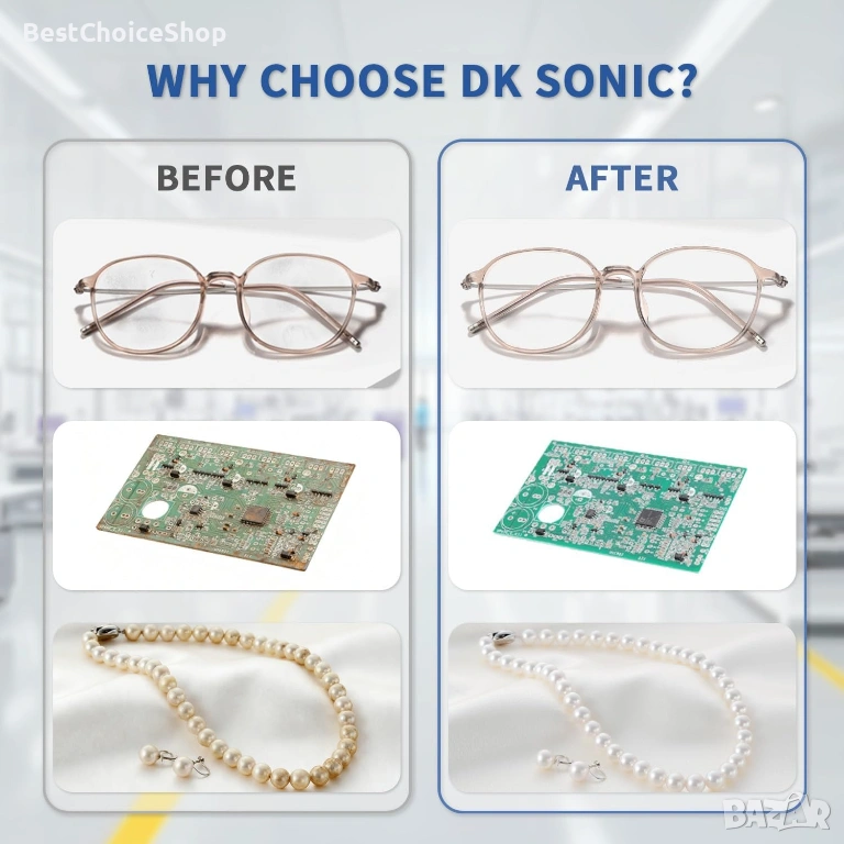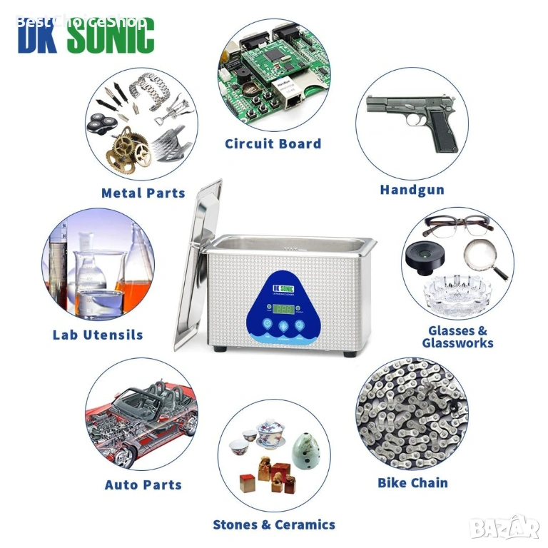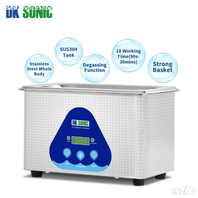 Професионална ултразвукова почистваща вана DK Sonic DK-90A, подходяща за прецизно почистване на метални предмети, бижута, инструменти, часовници, дюзи, карбуратори, електронни компоненти и др.