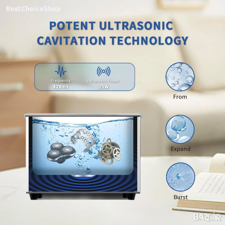Ултразвукова почистваща вана 900ML 35W с цифров таймер