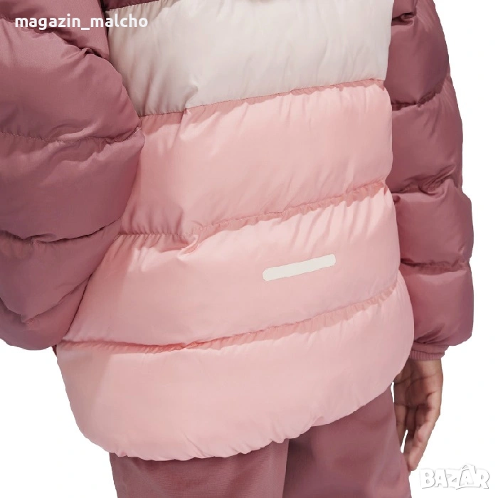 Дебелата подплатена конструкция на това яке, гарантира топлина и защита срещу студените зимни дни. Якето е изградено от специална материя, която го прави устойчиво на вятър и вода. Двата външни джоба с цип, качулка и закопчаването с цип ще накарат всяко дете да се чувства топло и уютно през студените дни. Завършен вид дава прекрасното съчетаване на цветовете, така и разпознаваемата марка Adidas.