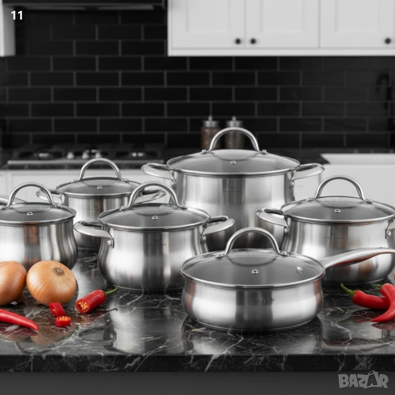 Комплект EDENBERG EB-2420M от 12части - неръждаема стомана с многослойно дъно за бързо и равномерно → Обява 53448295