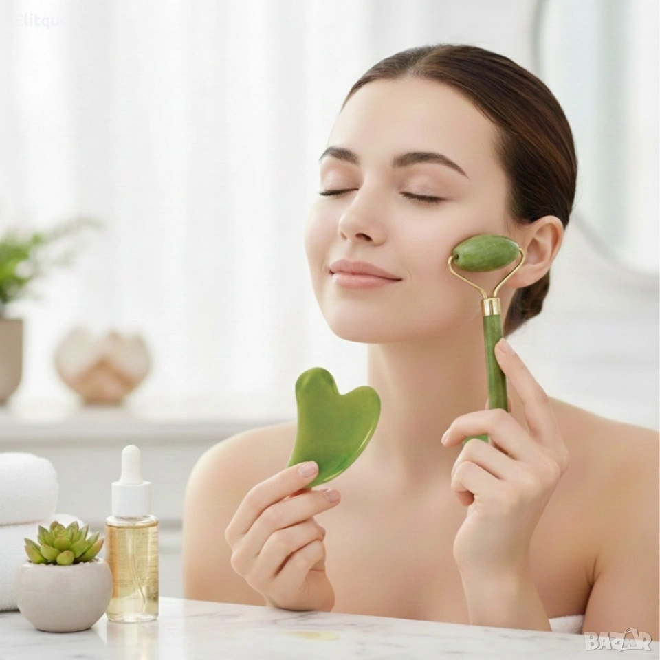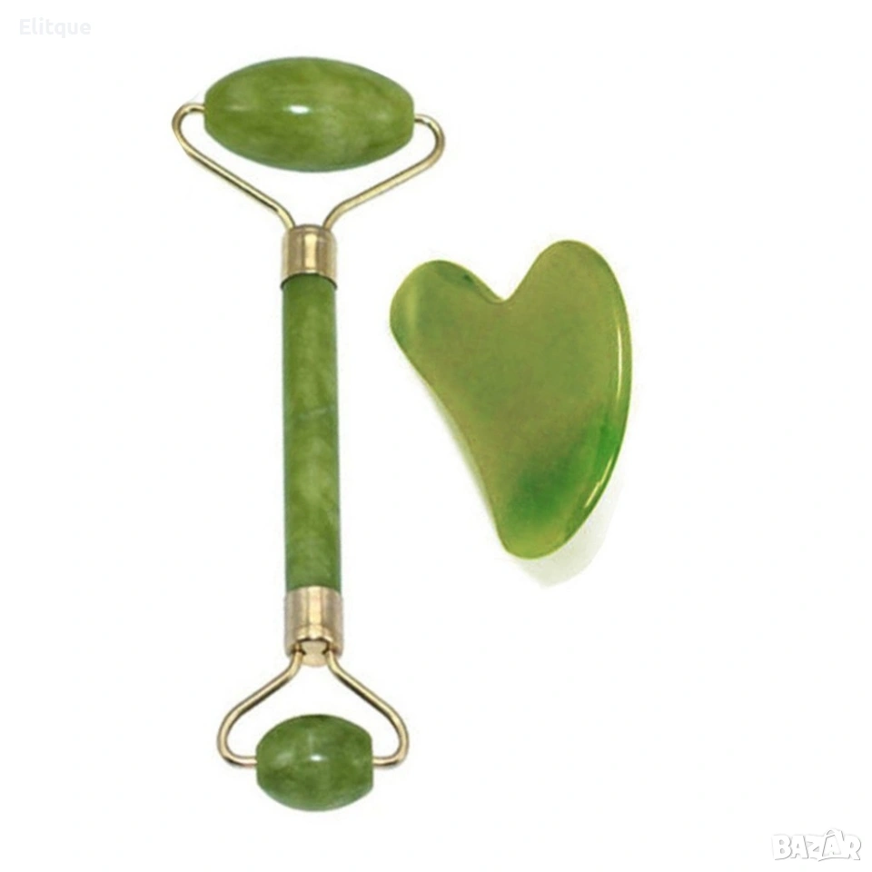 Нефритен масажор за лице с 2 ролки + плосък нефритен камък