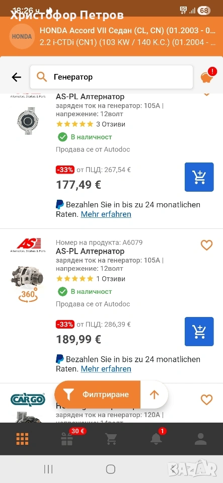 алтернатор хонда 2.2 cdti → Обява 53448892