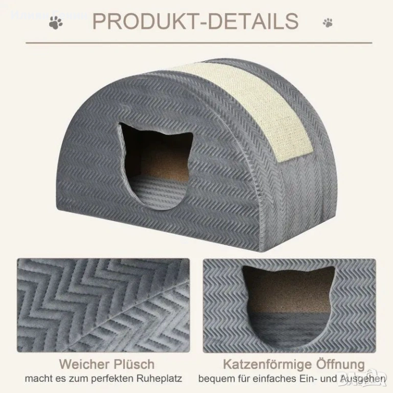 ✔ Зоната за почивка с 1 вход във формата на котка позволява на котката ви лесно да влиза и излиза.