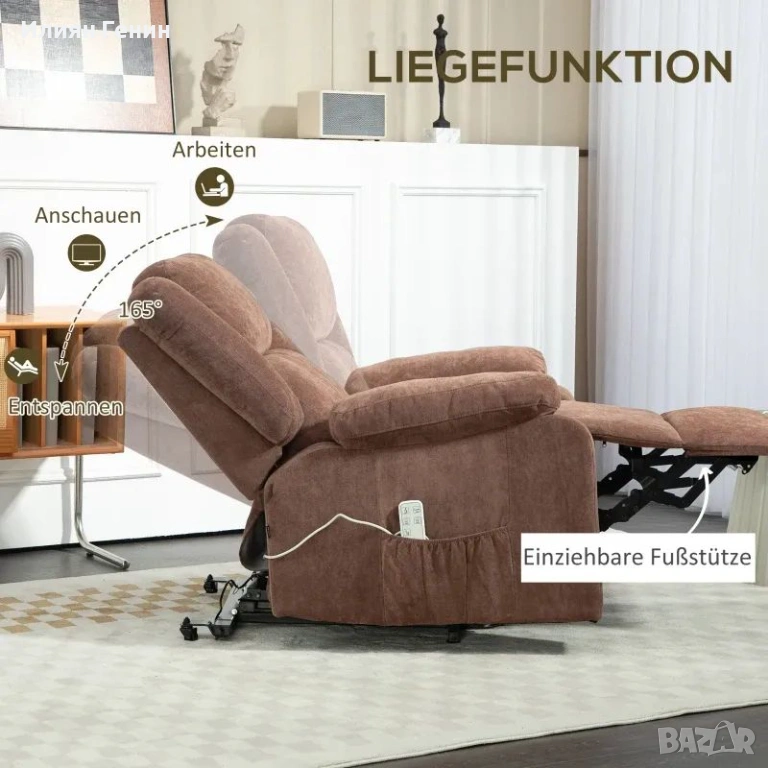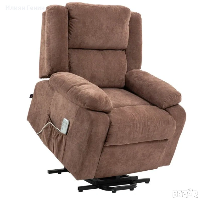 HOMCOM Фотьойл с асистент за повдигане, регулируема облегалка за глава, сгъваема облегалка, подплатени подлакътници, светлокафяв - 380.00 €.