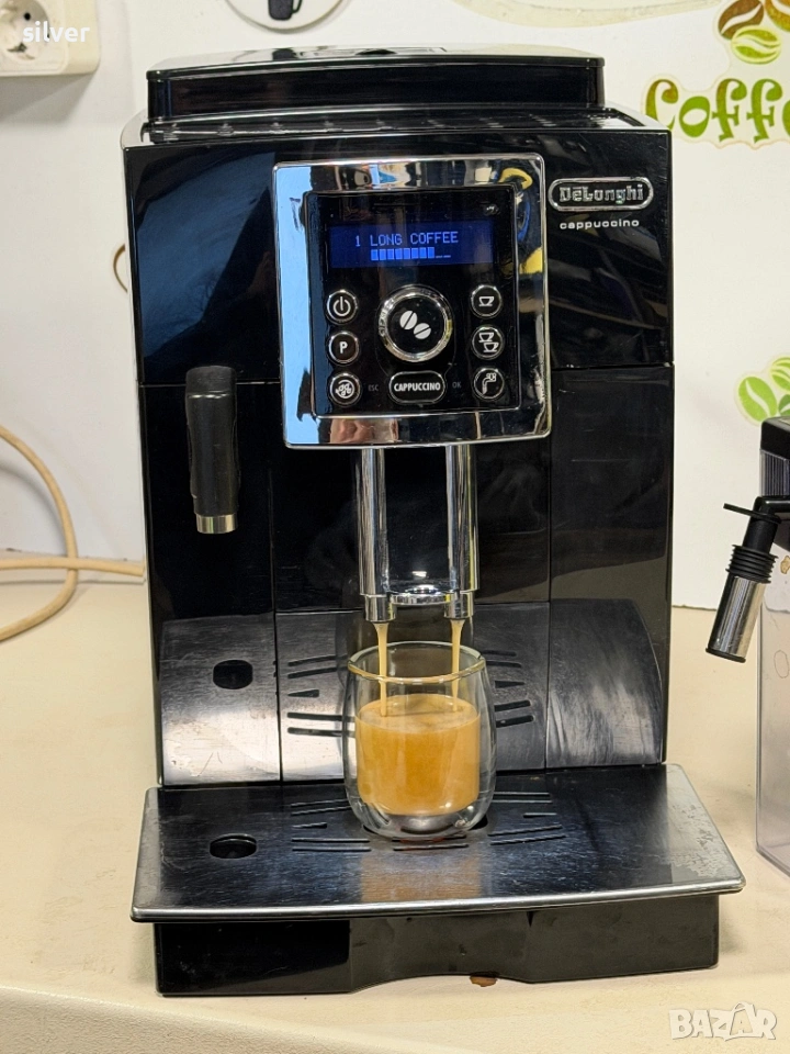 Продавам кафе автомат, визуалнто му състояние се вижда на снимките работи отлично. Почистена проверена, смазана минала е пълна профилактика готова за употреба. Работи с кафе на зърна и мляно кафе. Има каничка за мляко капучино. Приготвя страхотно кафе Пълна гаранция 1 месец Пътува с опция преглед и тест преди плащане