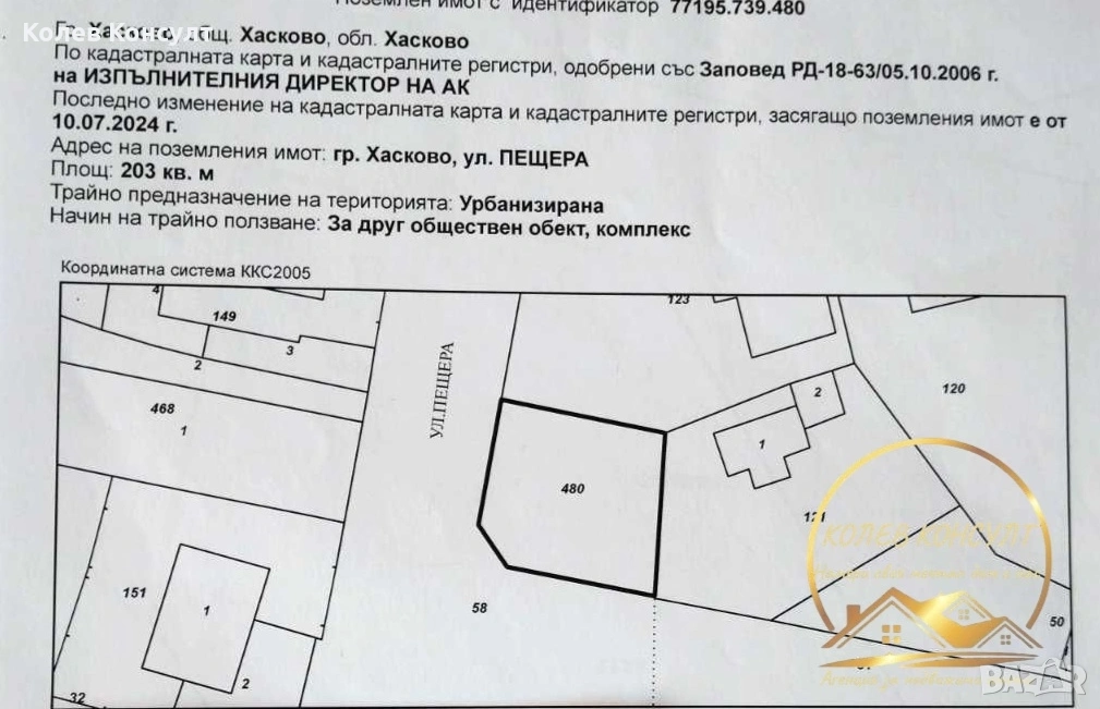 🥇 Агенция “Колев Консулт” продава ъглов парцел УПИ в гр. Хасково, кв. „Хисаря“