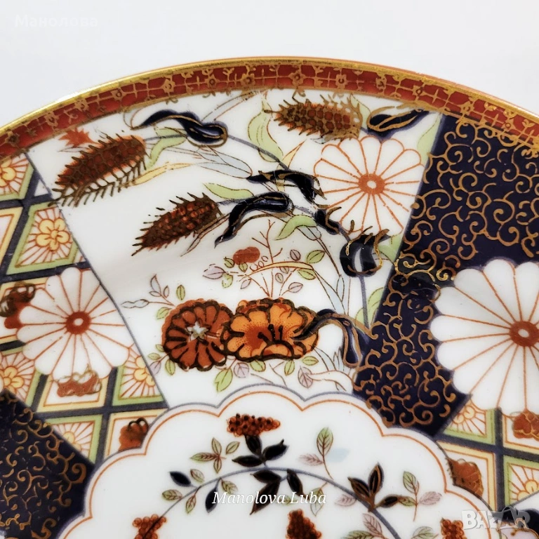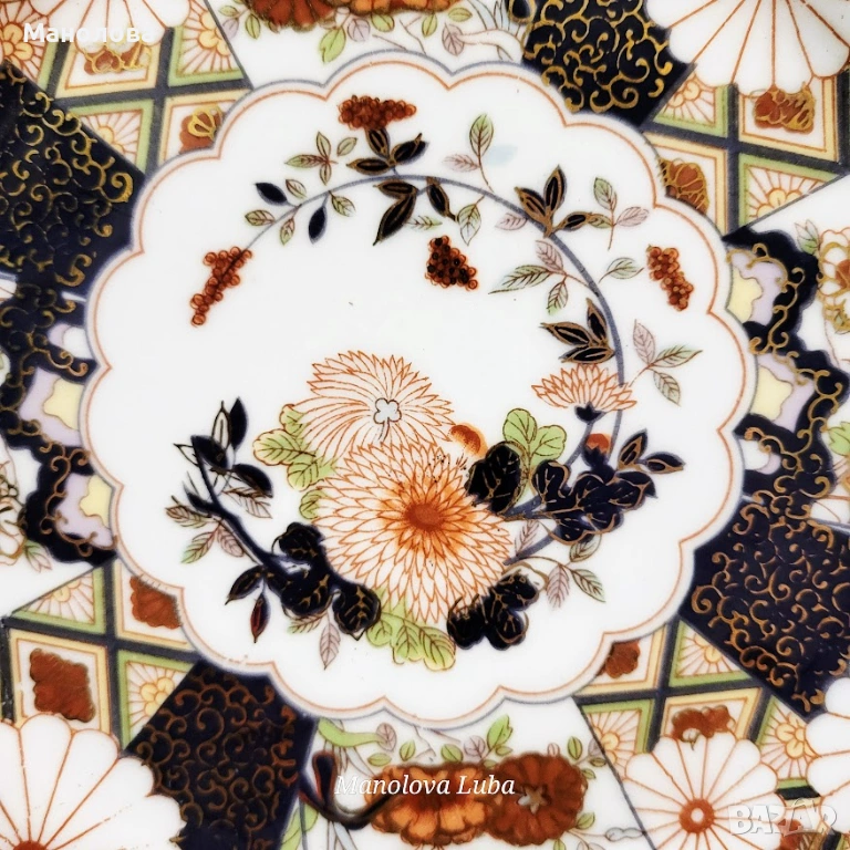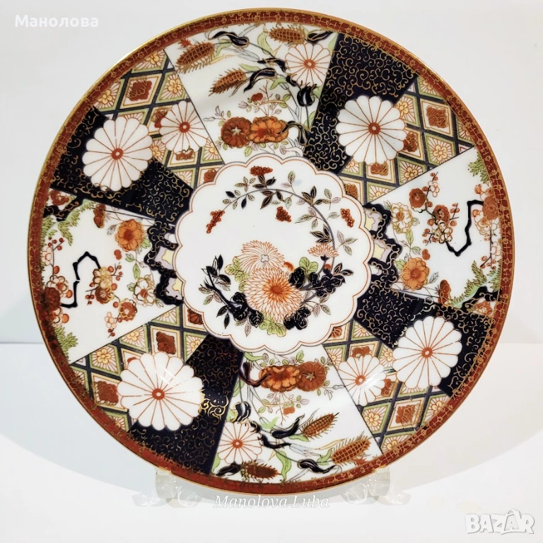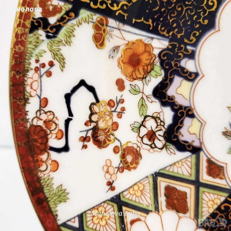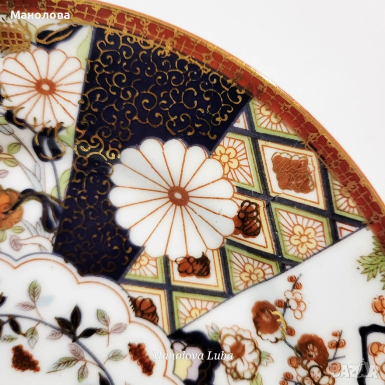 Декоративна порцеланова чиния Haruzo Saji от Нагоя, Япония в стил Imari/Kutani