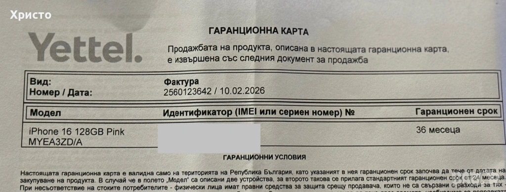 Продавам чисто нов Apple iPhone 16 128GB – неразпечатан и неактивиран, в оригинална запечатана кутия. Телефонът е закупен на 10 Февруари и е с 36 месеца гаранция към Yettel. Работи с всички оператори. Никога не е използван и не е отварян – купувачът ще бъде първият, който ще го активира. Към телефона подарявам оригинален Apple адаптер за зареждане, за да бъде комплектът напълно пълен. Без бартери!!!