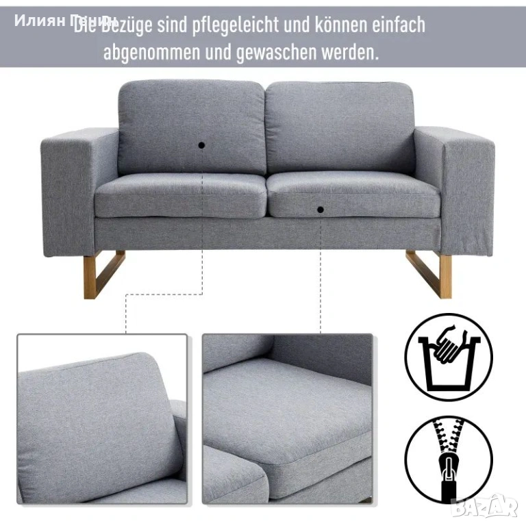 Двуместен диван HOMCOM®, тапициран диван, подлакътник, дърво, светлосив, 145 x 82 x 78 см - 200.00€.