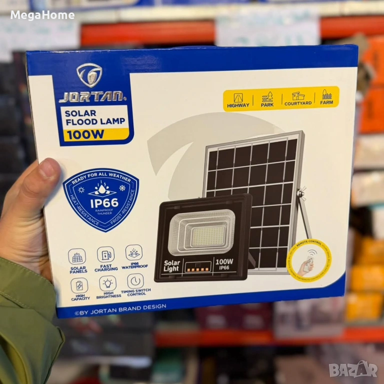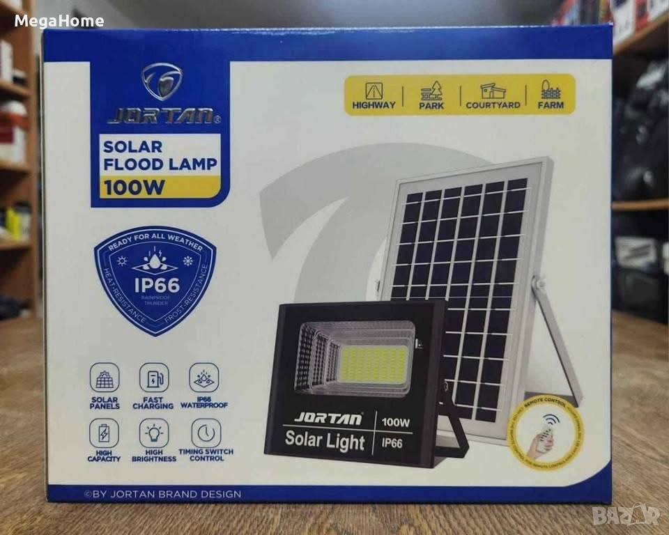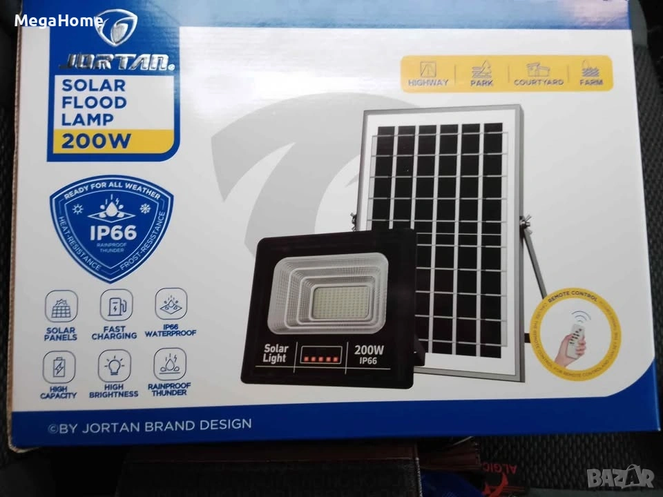 Мощен соларен прожектор Jortan 100/200W с отделен соларен панел