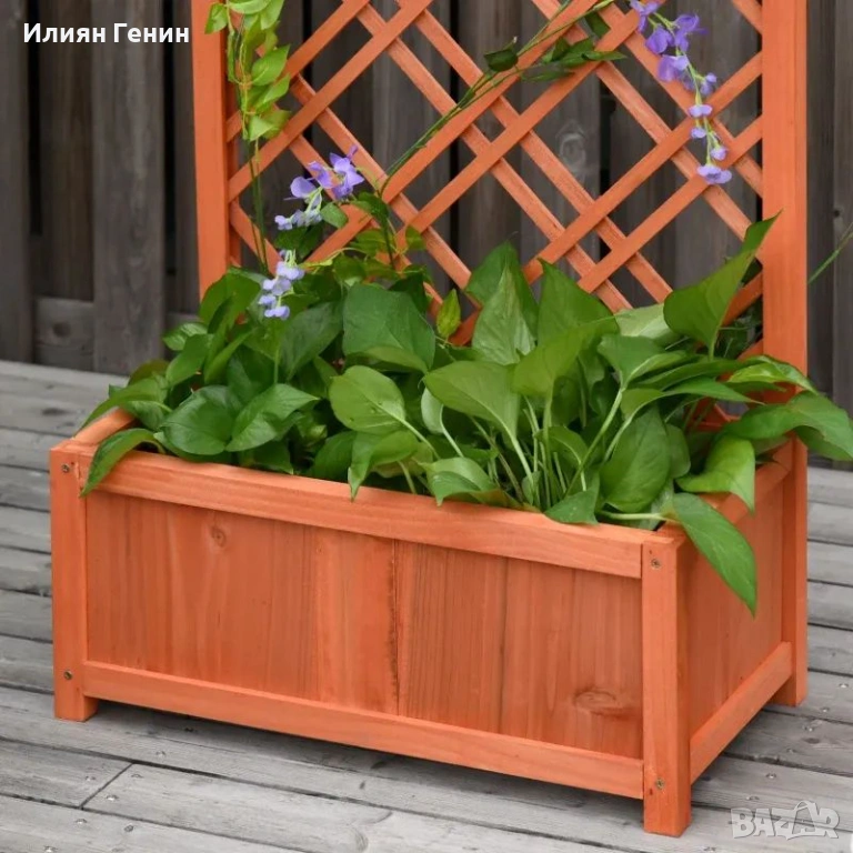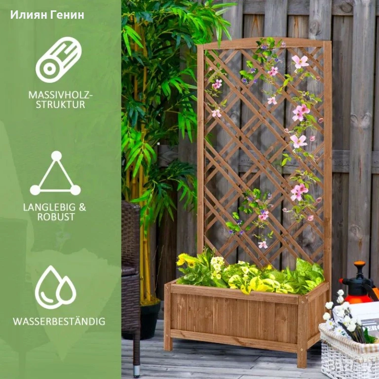 Здрава конструкция: Рамката от масивно дърво със здрави метални елементи е достатъчно стабилна, за да побере вашите саксии за цветя или увивни растения.
