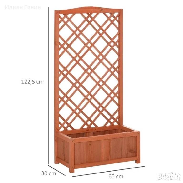 Решетка за цветя със саксия, 60 x 30 x 122, 5 см, дърво - 40.00€.