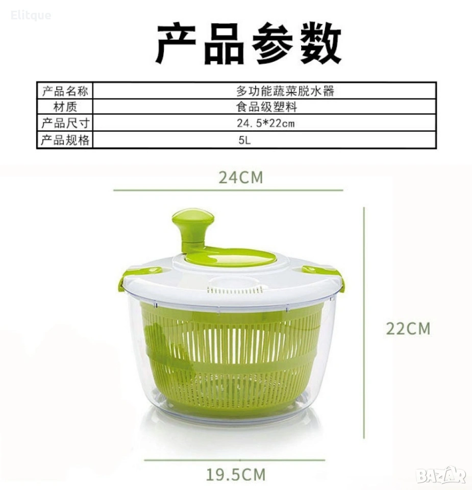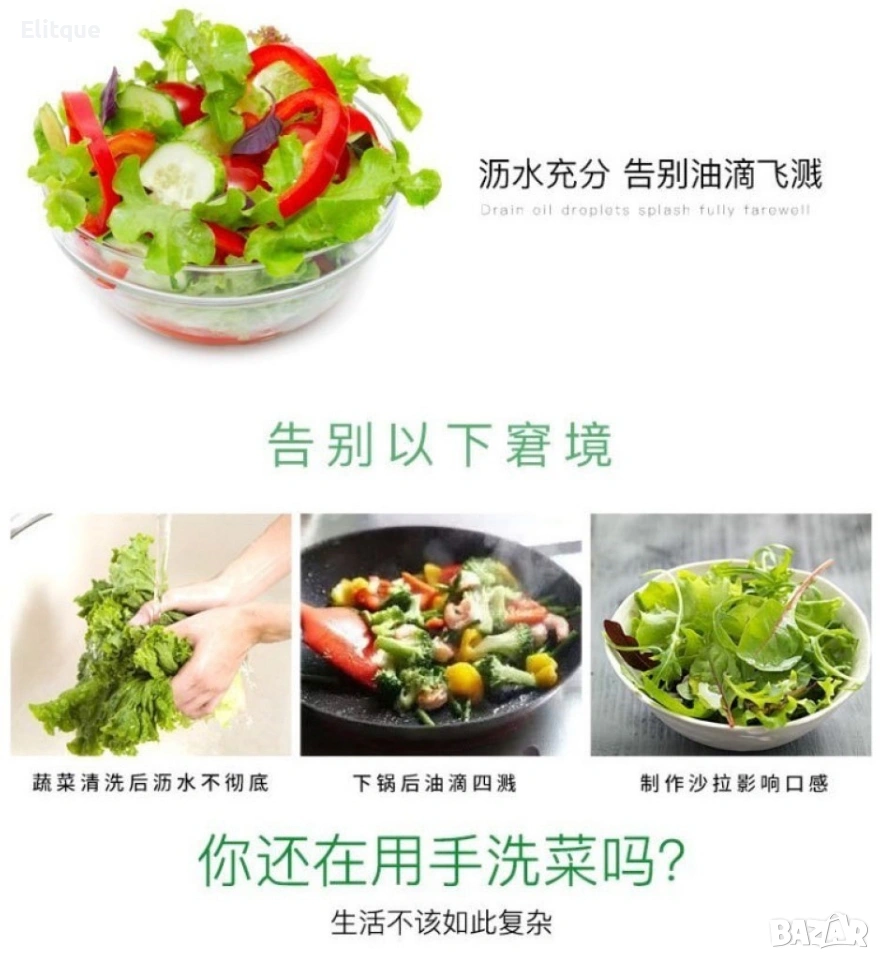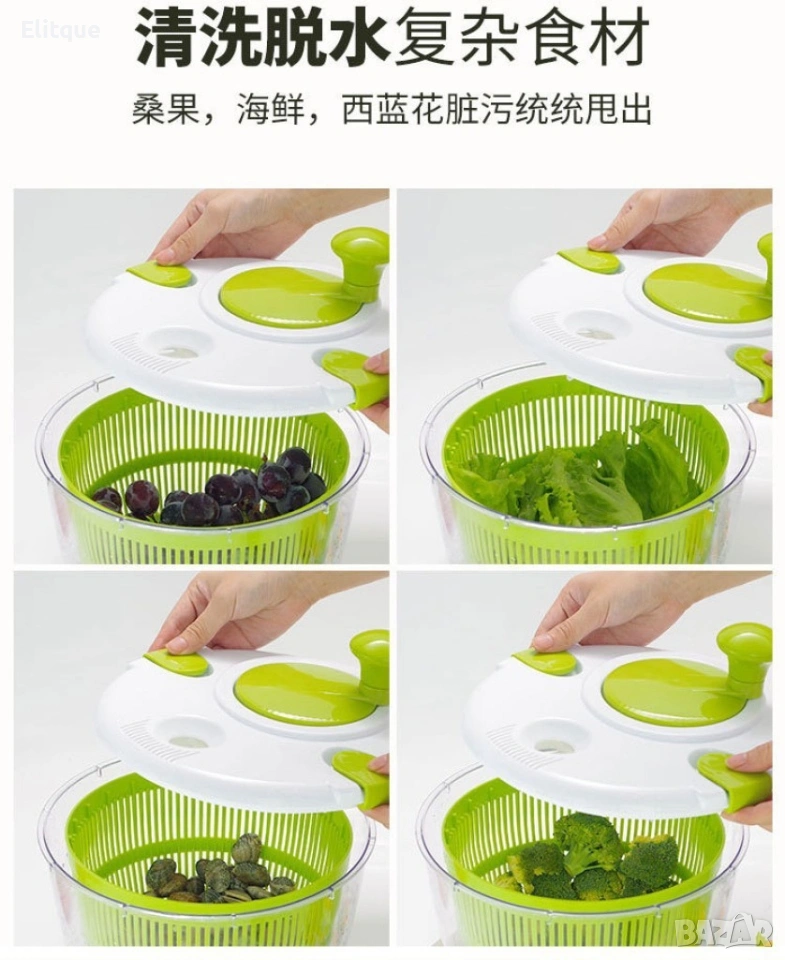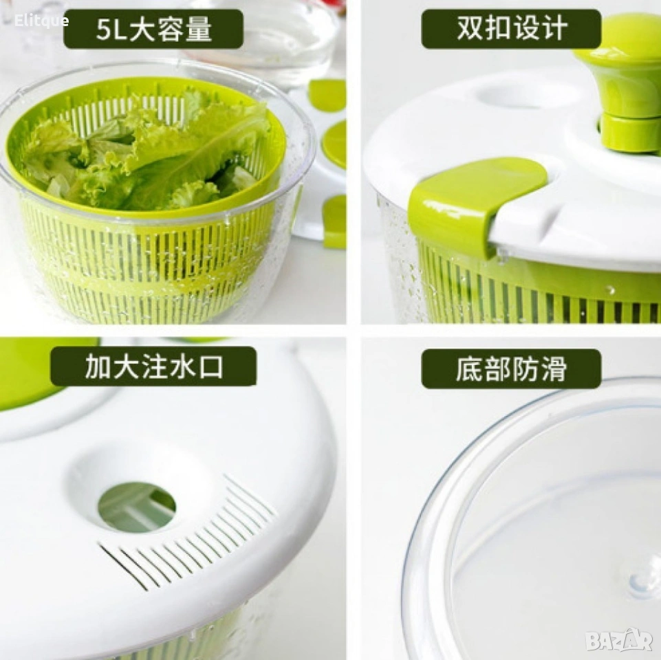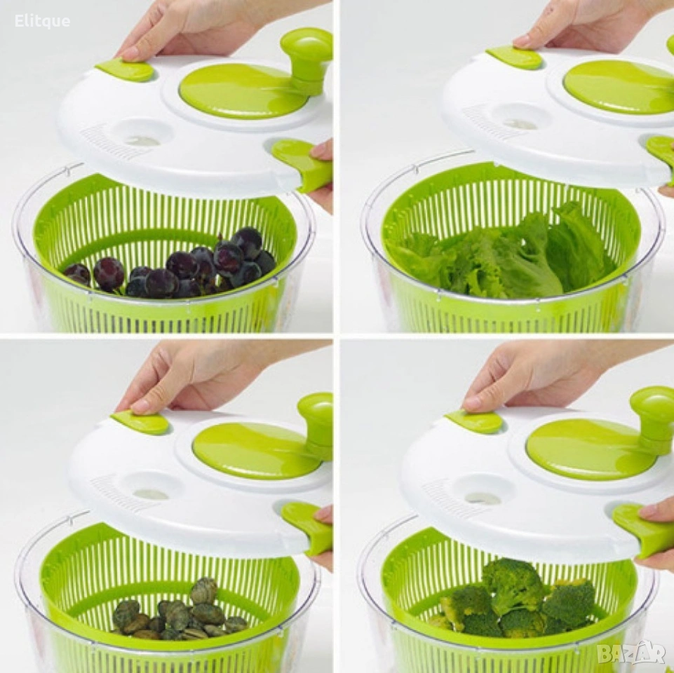 Зеленчуков съд за салата – измиване и подсушаване на плодове и зеленчуци Практичен съд за измиване и подсушаване на плодове и зеленчуци, идеален за бързо приготвяне на свежи салати. Позволява лесно измиване, отцеждане и подсушаване в един съд. Подходящ за ежедневна употреба в кухнята, спестява време и улеснява подготовката на храната. Предимства: Измиване и отцеждане в един съд Подходящ за плодове и зеленчуци Лесен за използване Компактен и удобен за съхранение Лесен за почистване Идеален помощник за всяка кухня. Доставка с Еконт с опция преглед до 3 работни дни.