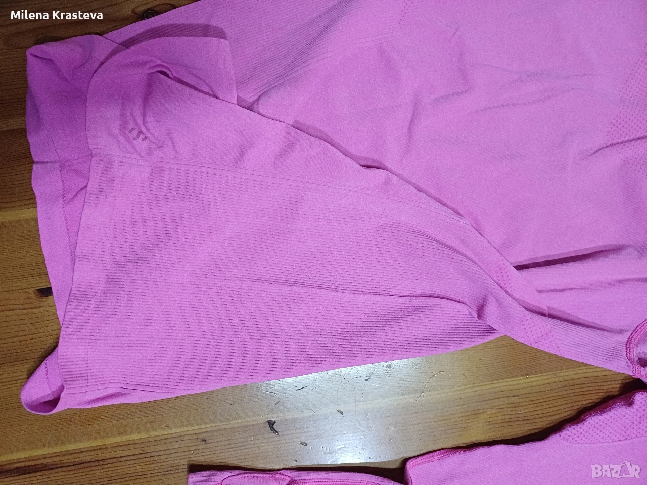 Термо блуза. В обласста на мишниците и в предната част е осигурена чрез плетка дишаемост. в областта на гърдите и стамаха плетката е тип плисе и може да понесе разтягане при обемна структура на тялото.