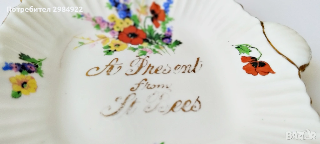Винтидж чиния от фин костен порцелан с флорален мотив от Taylor and Kent, Стафордшир, Англия