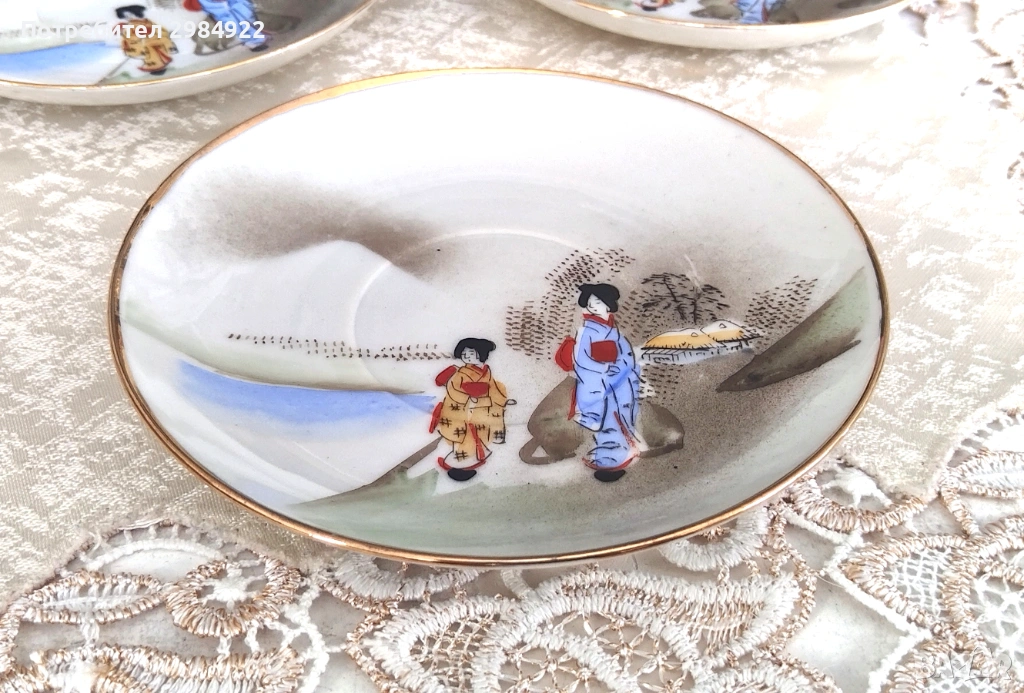 Ръчно рисувана японска винтидж чаша за чай и чинийка, стил Nippon. Комплект чинии само за японски чай без чаши.