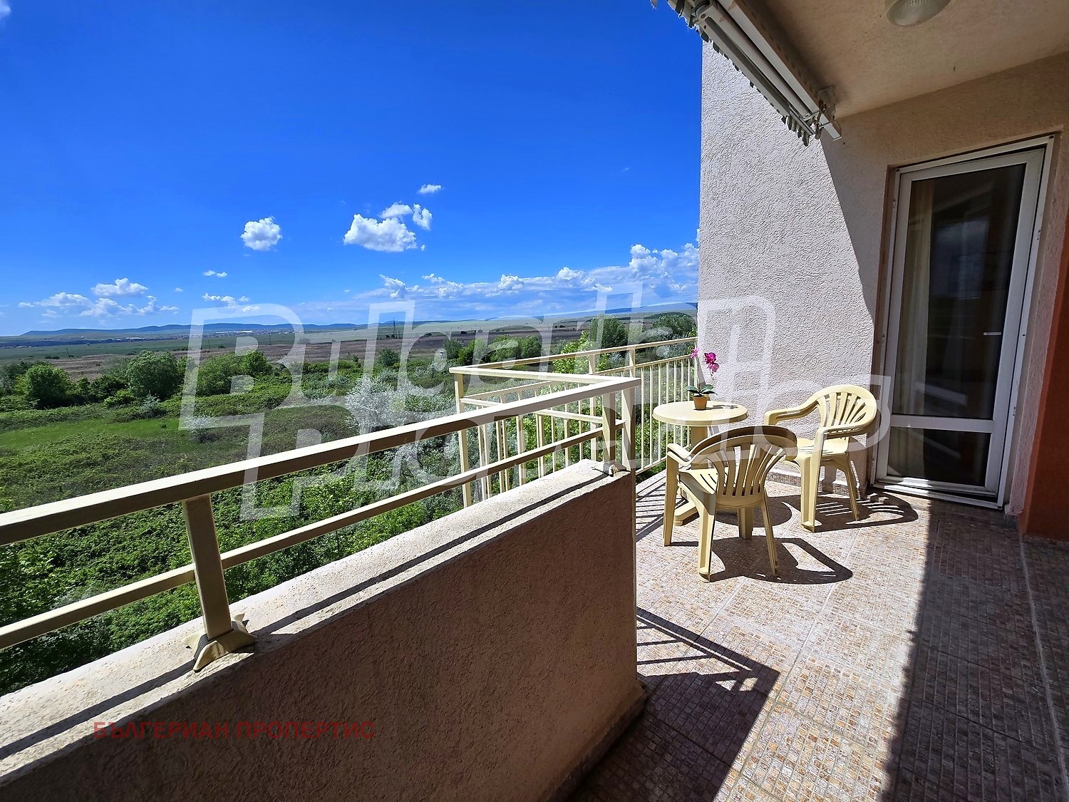 Голяма тераса с приятна гледка към околните поля и планината