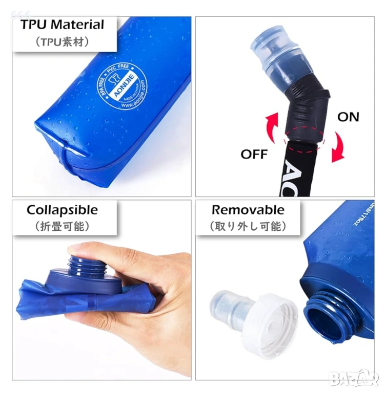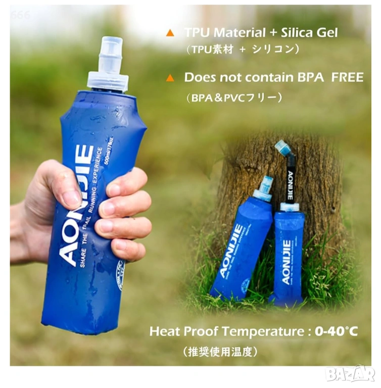 ПРИЛОЖЕНИЕ: Съвместим с повечето хидратиращи раници, идеален за маратон, бягане, туризъм, колоездене и катерене