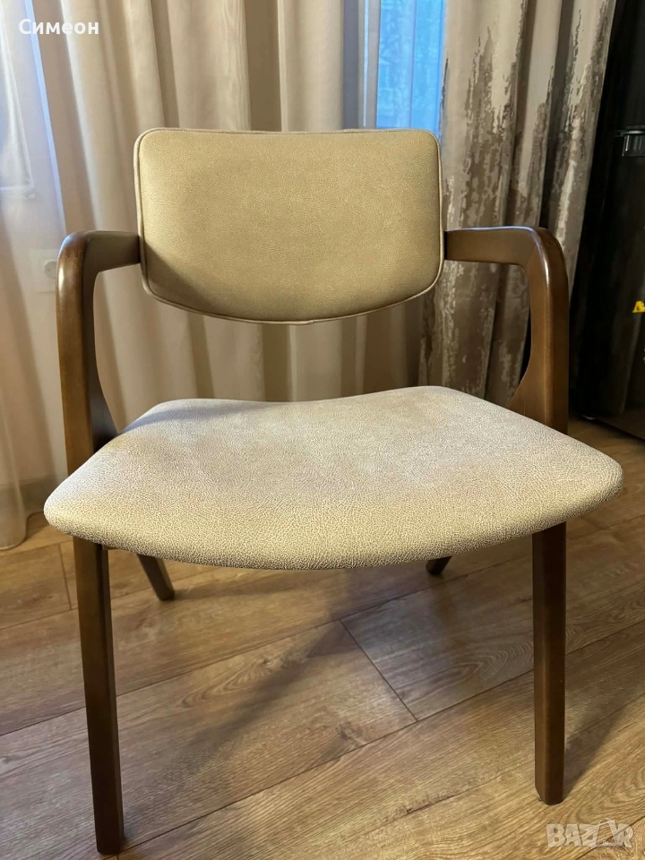 Комплект от 5 стилни трапезни столове с дървена рамка и мека тапицирана седалка. Подходящи за обзавеждане на трапезария или кухня. Цената е за брой. За гр.Бургас възможно лично предаване. За другите градове изпращам срещу предварително капаро.
