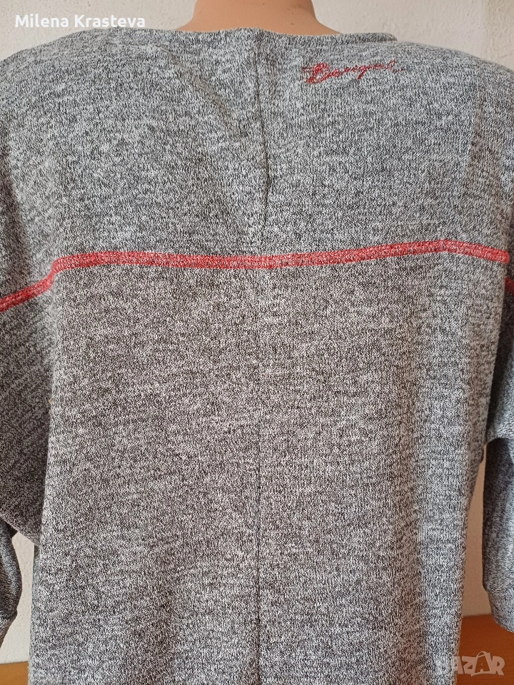 Блуза с маркировка на марката. Разкроя е лек и свободен. Плетката е финна и елегантна. Деколтето е отворено като при пролетно есенна блуза. Качеството им винаги е на ниво.