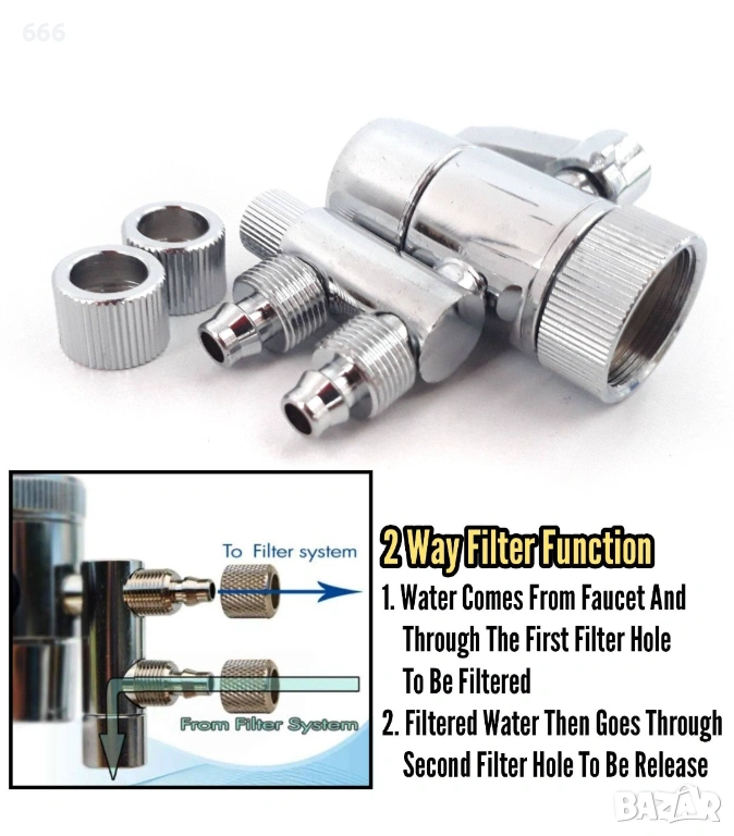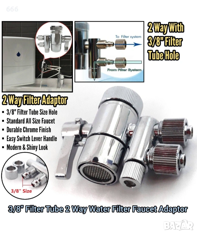 3/8-ИНЧОВ ДВУПОСОЧЕН АДАПТЕР ЗА ФИЛТЪР ЗА КУХНЕНСКИ КРАН → Обява 53450058