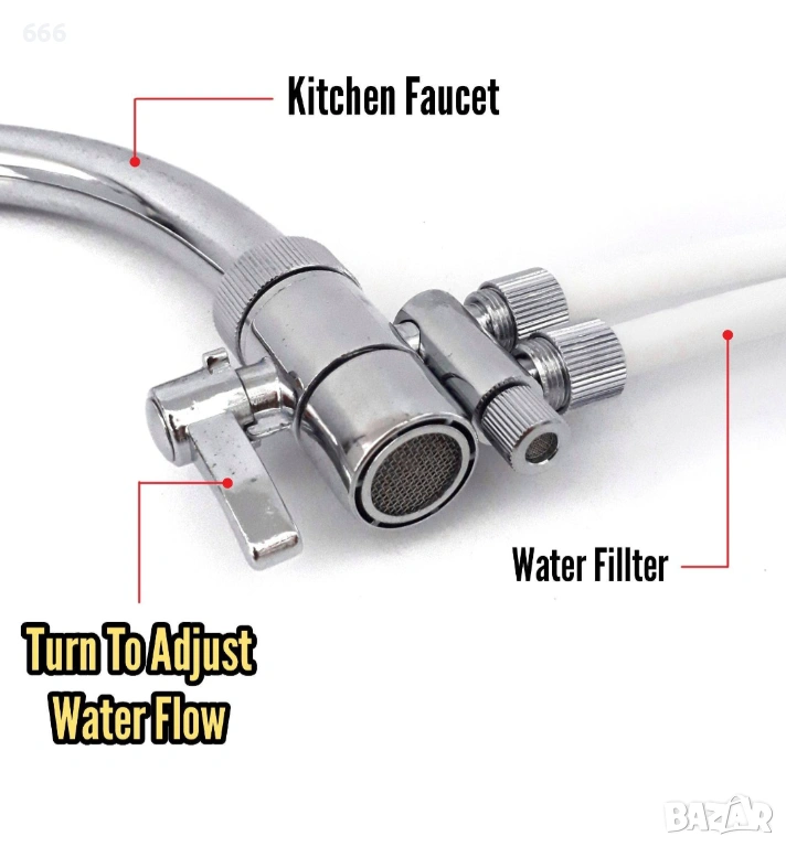 за свързване на вашата система за пречистване на вода за плот или система за обратна осмоза с тръба 3/8" директно към кухненски кран за лесна употреба.