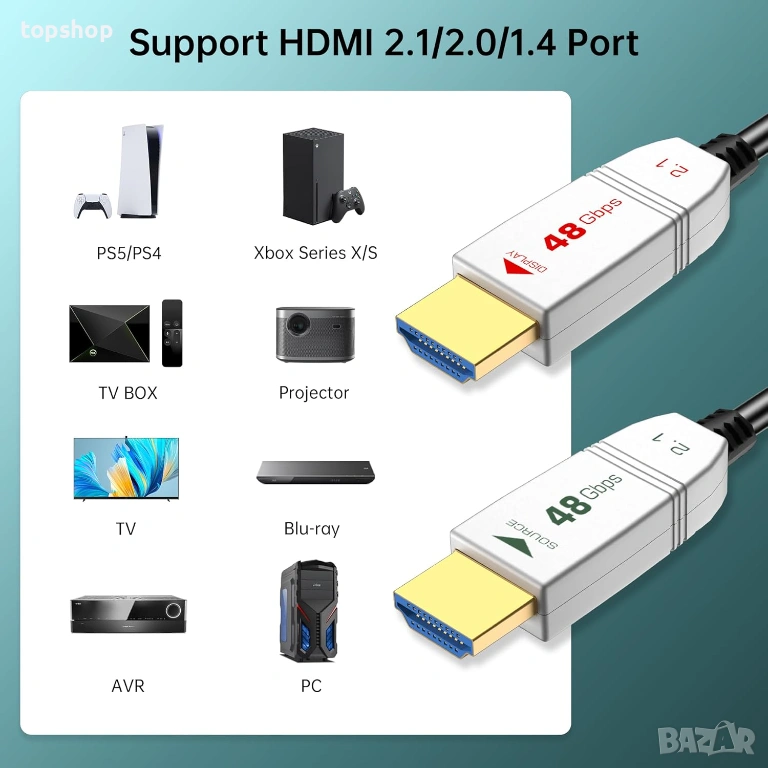 Продавам професионален висок клас оптичен HDMI 2.1 кабел с дължина 20 метра. Идеалното решение за свързване на конзоли (PS5, Xbox Series X) или мощни компютри към телевизор или проектор на голямо разстояние без никаква загуба на качеството.