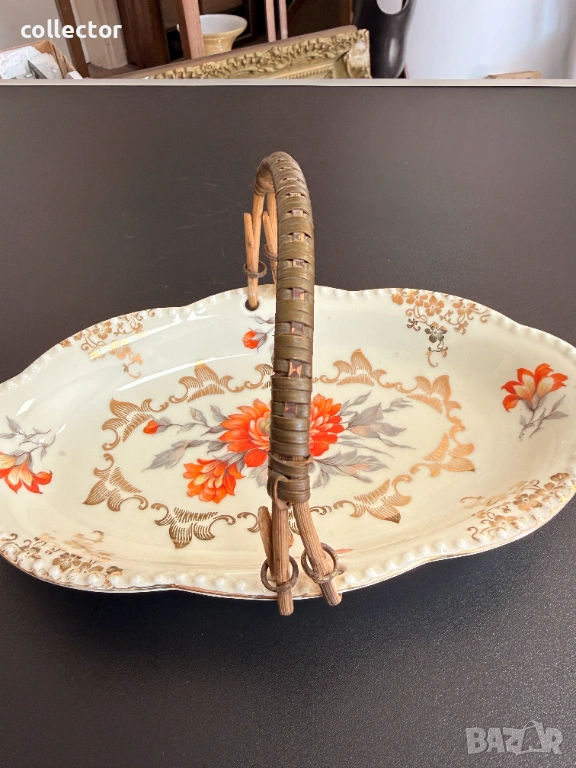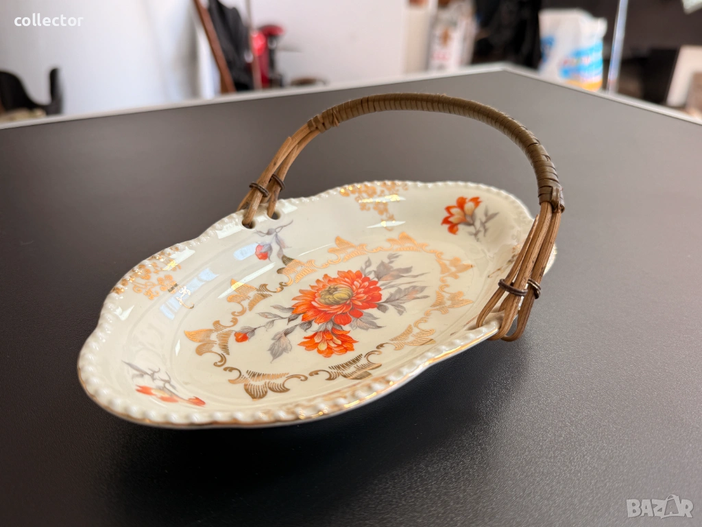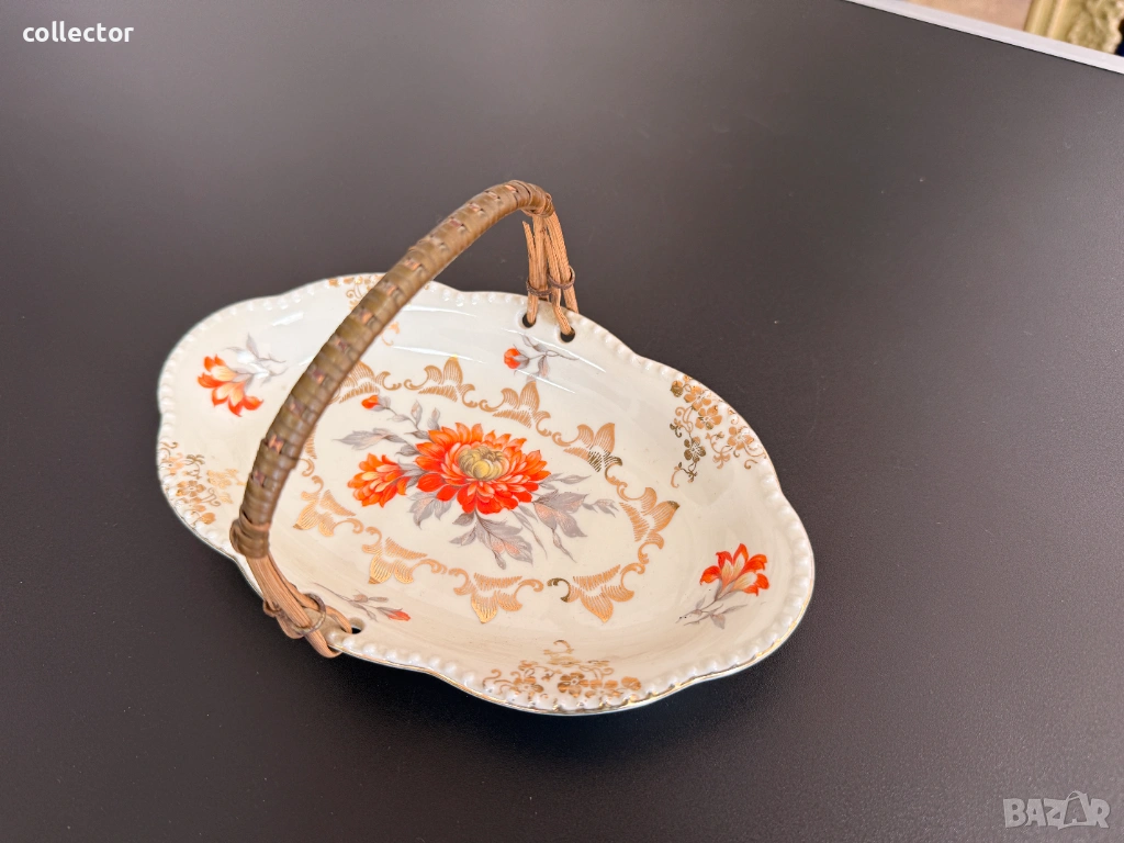 Дизайнът е силно повлиян от японската школа Kutani, характеризираща се с богата орнаментика в оранжево и обилно позлатяване. Централният мотив изобразява голяма хризантема в наситени цветове, заобиколена от деликатни златни арабески и флорални елементи по периферията.