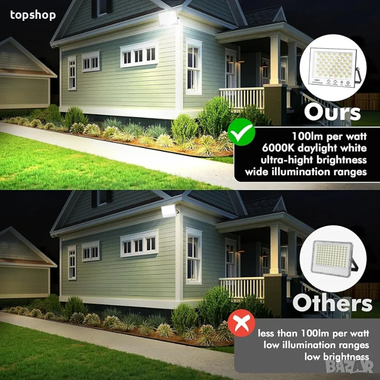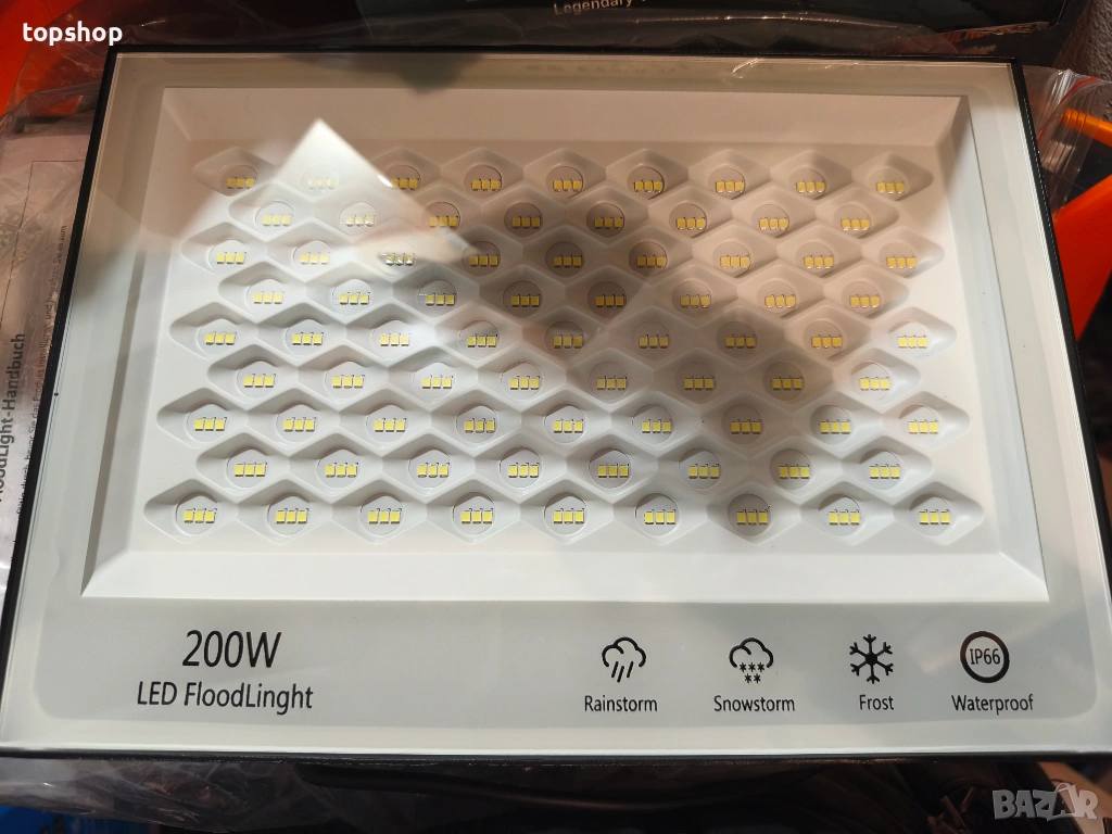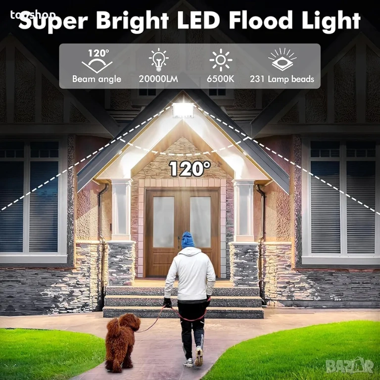Изключителна яркост: Всеки прожектор е оборудван с 231 SMD2835 LED чипа, осигуряващи студена бяла светлина (6500K) без сенки и отблясъци.