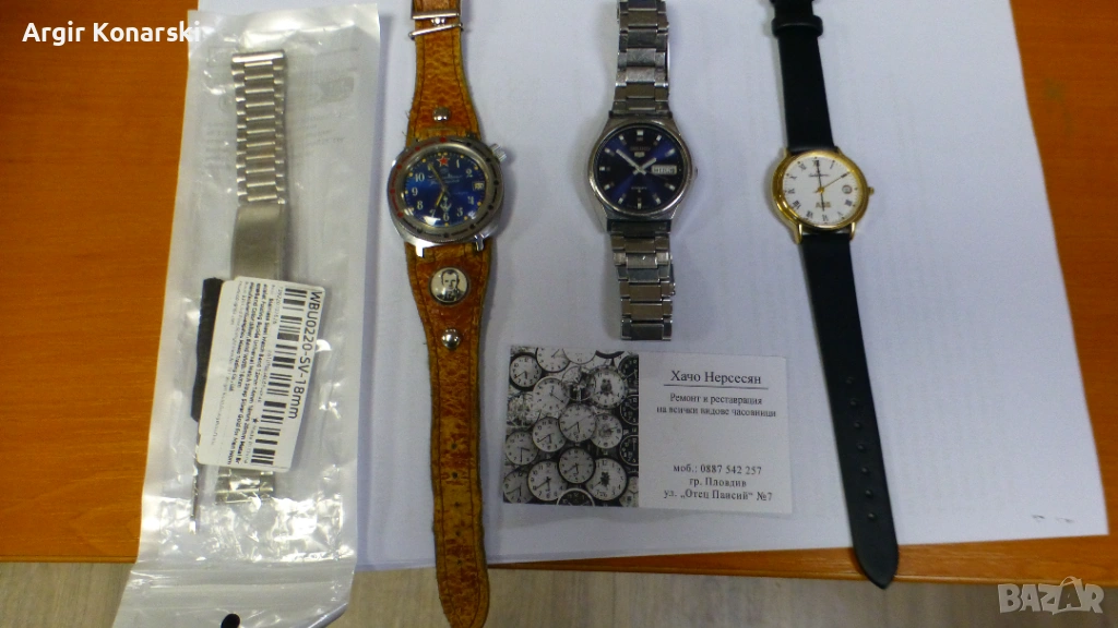 Продавам колекция ,сеико с кал. 6309 жапан след профилактика при Хачо - 2 сек. на 24ч. мод е 1984г. много запазен. 90Е: командирски олд скул 1988г СССР с оригиналната каишка +метална за модела ,много запазен работи ок ,смазан и проверен стои много добре. 65Е : швеицарски с ронда и нова батерия сони 34мм каса
