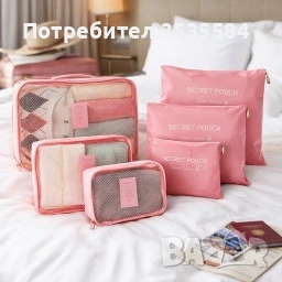 Комплект органайзер за багаж с 6 чанти за подреден и лесен транспорт - розов цвят → Обява 53450206